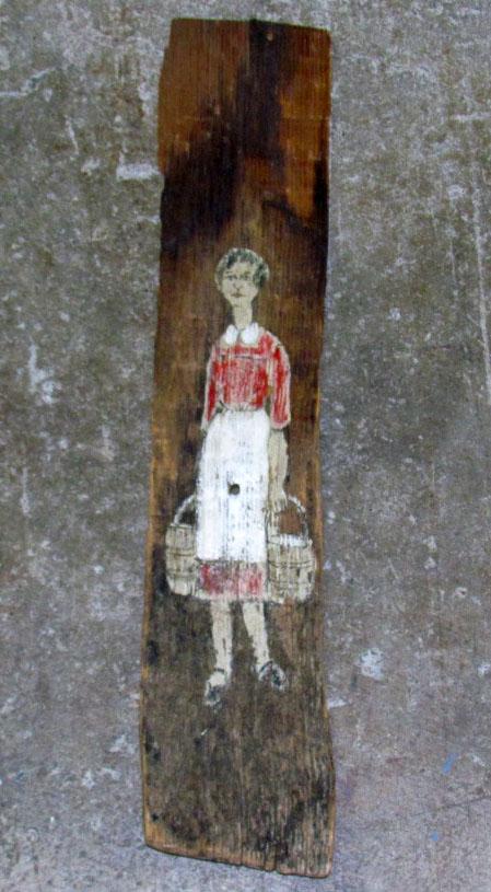 VINTAGE FOLK ART PAINTING OF MILK MAID ON WOOD - Approx. 25.25" long