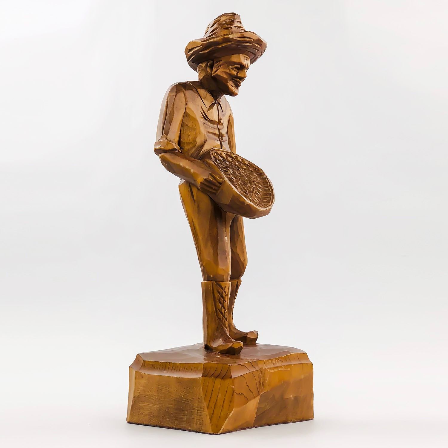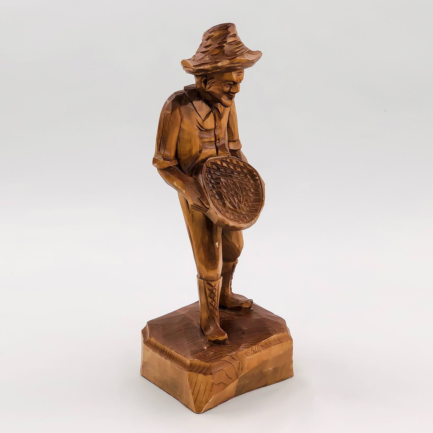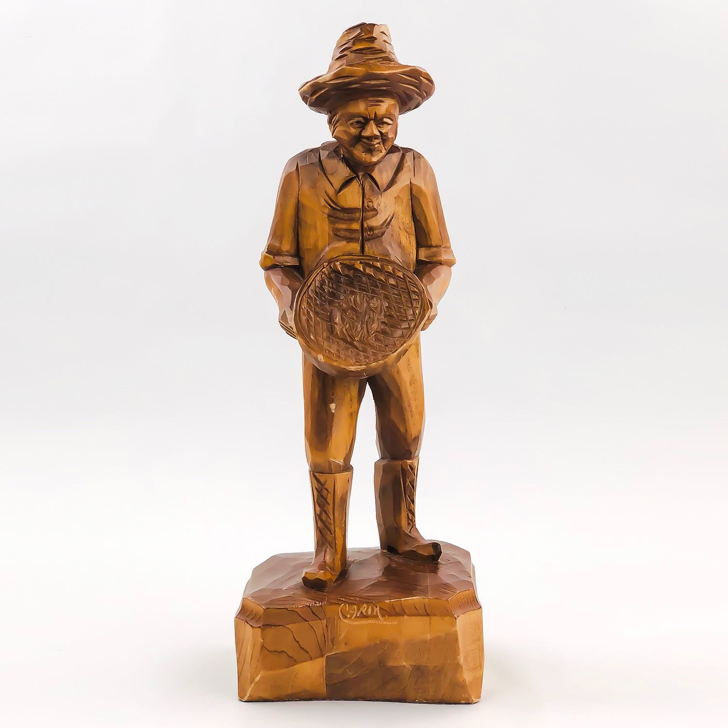 #9193 - CANADIAN FOLK ART SIGNED WOOD SCULPTURE - MAN WITH A BOWL… OR MAYBE HE IS GOLD PANNING? SIGNED “CARON” ON THE FRONT AT THE BASE, MEASURES: 11.5” (29 CM) TALL BY 4.25” (11 CM) WIDE BASE AND 4” (10 CM) DEEP BASE***ITEM(S) LOCATED IN LETHBRIDGE ALBERTA. ALL ITEMS IN THIS AUCTION QUALIFY FOR OUR FREE TRANSPORT TO EDMONTON SERVICE. WORLDWIDE SHIPPING AVAILABLE