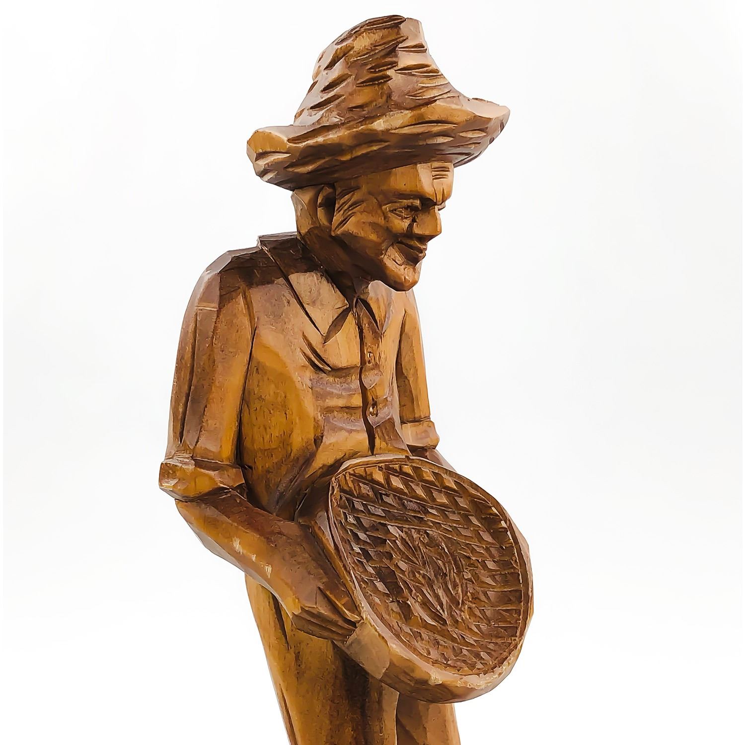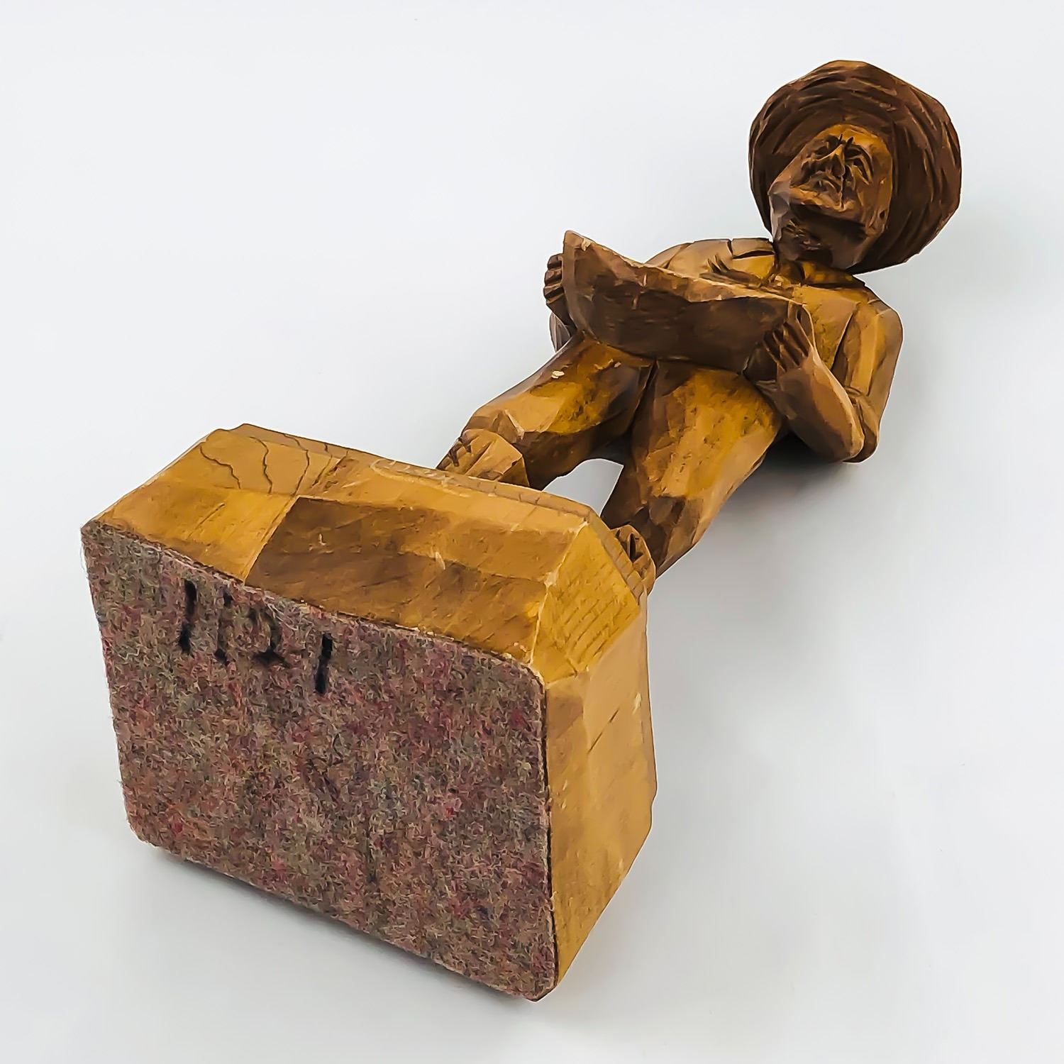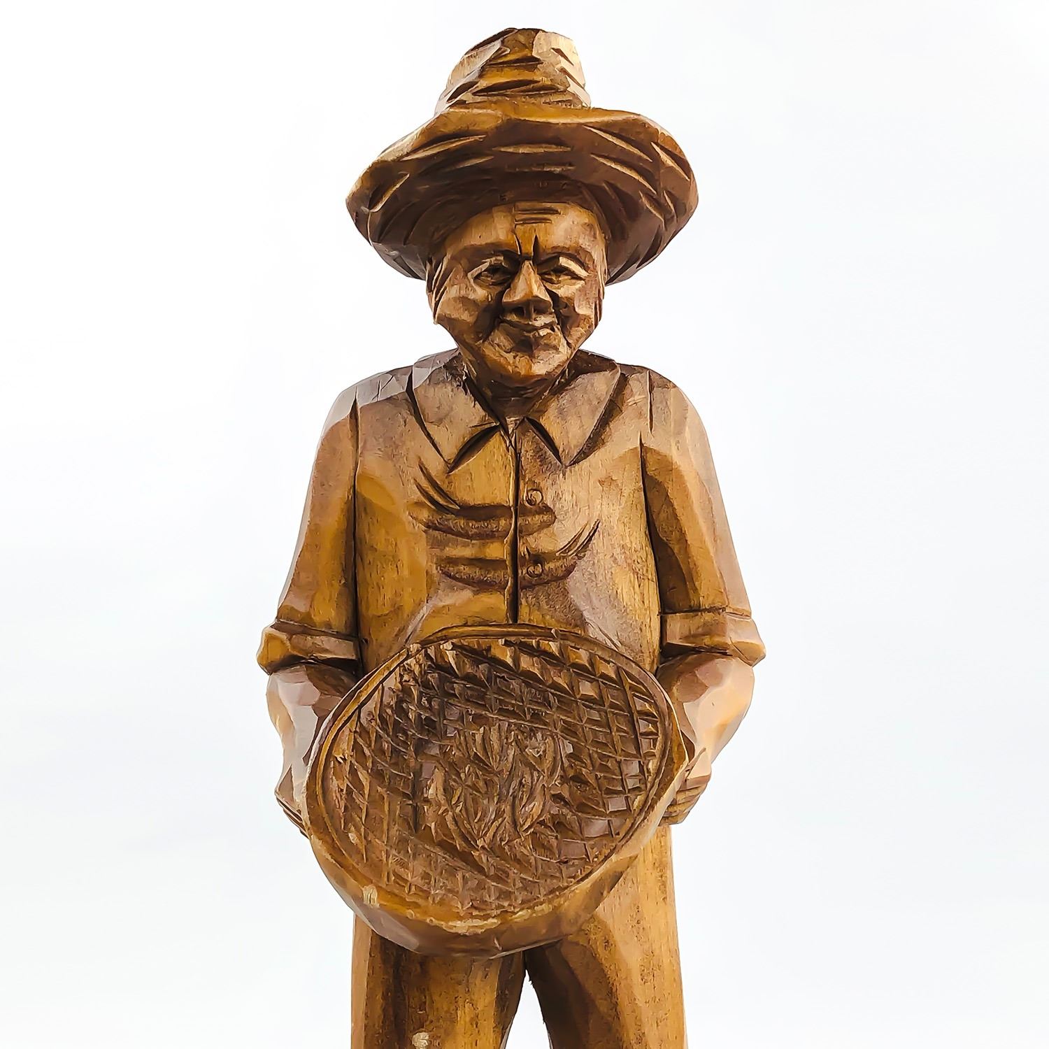 #9193 - CANADIAN FOLK ART SIGNED WOOD SCULPTURE - MAN WITH A BOWL… OR MAYBE HE IS GOLD PANNING? SIGNED “CARON” ON THE FRONT AT THE BASE, MEASURES: 11.5” (29 CM) TALL BY 4.25” (11 CM) WIDE BASE AND 4” (10 CM) DEEP BASE***ITEM(S) LOCATED IN LETHBRIDGE ALBERTA. ALL ITEMS IN THIS AUCTION QUALIFY FOR OUR FREE TRANSPORT TO EDMONTON SERVICE. WORLDWIDE SHIPPING AVAILABLE