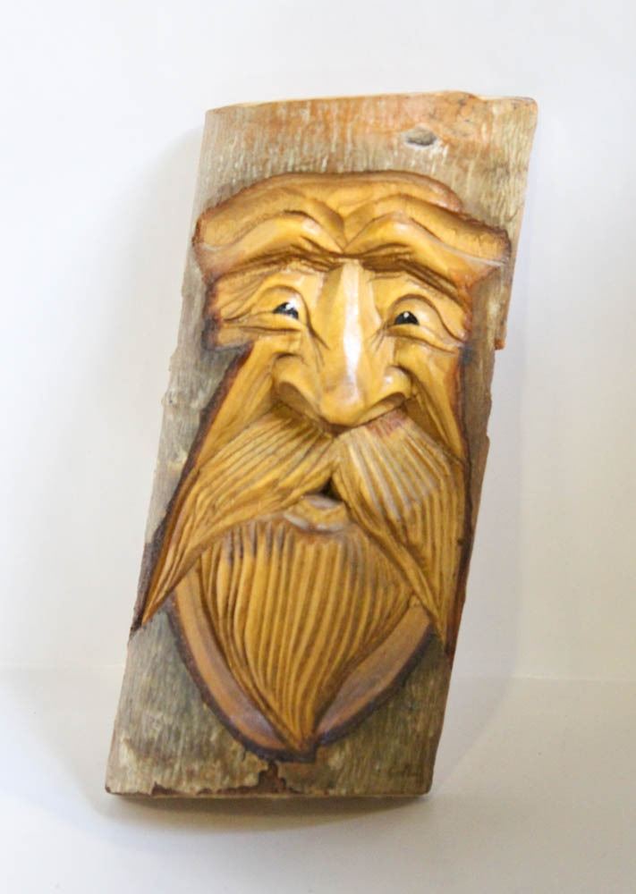 VINTAGE FOLKART CARVED WOOD FACE SIGNED 8"