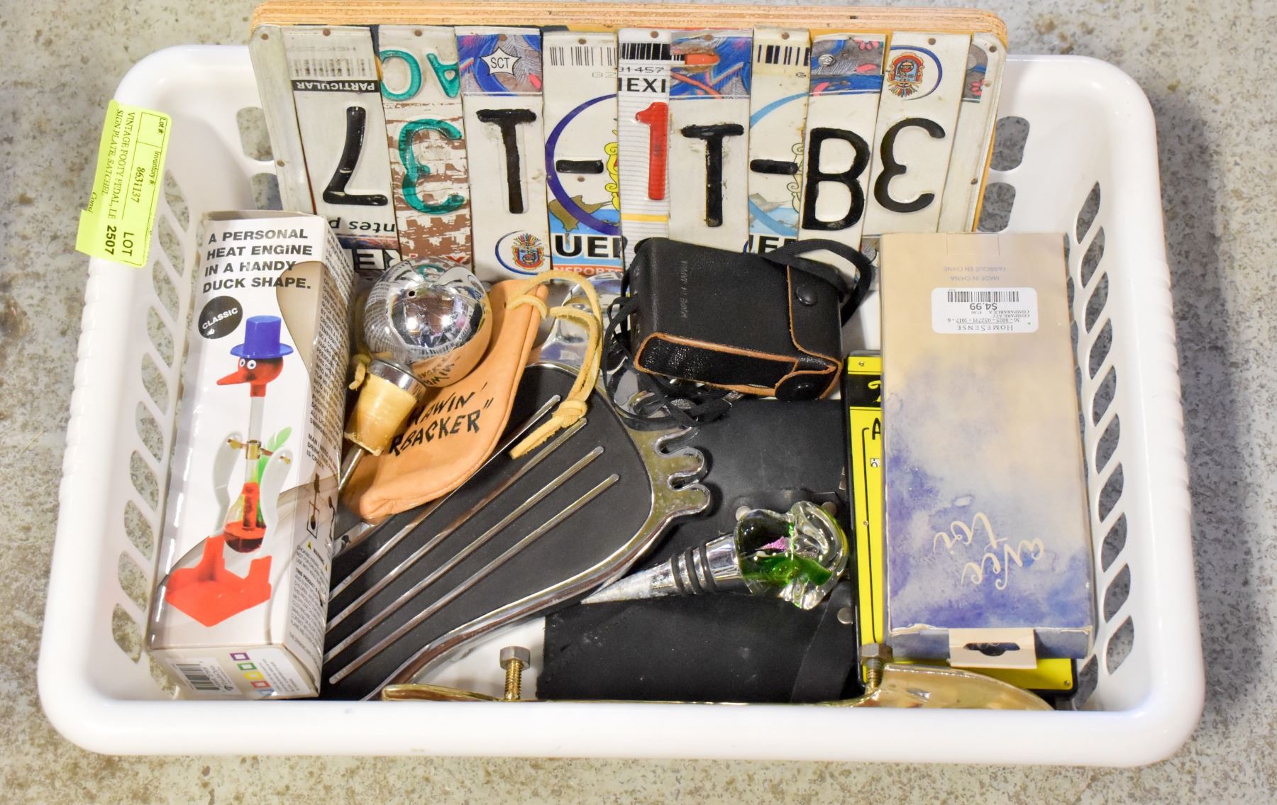 VINTAGE FOOTY PEDAL, LET IT BE SIGN PLATE, SATCHEL