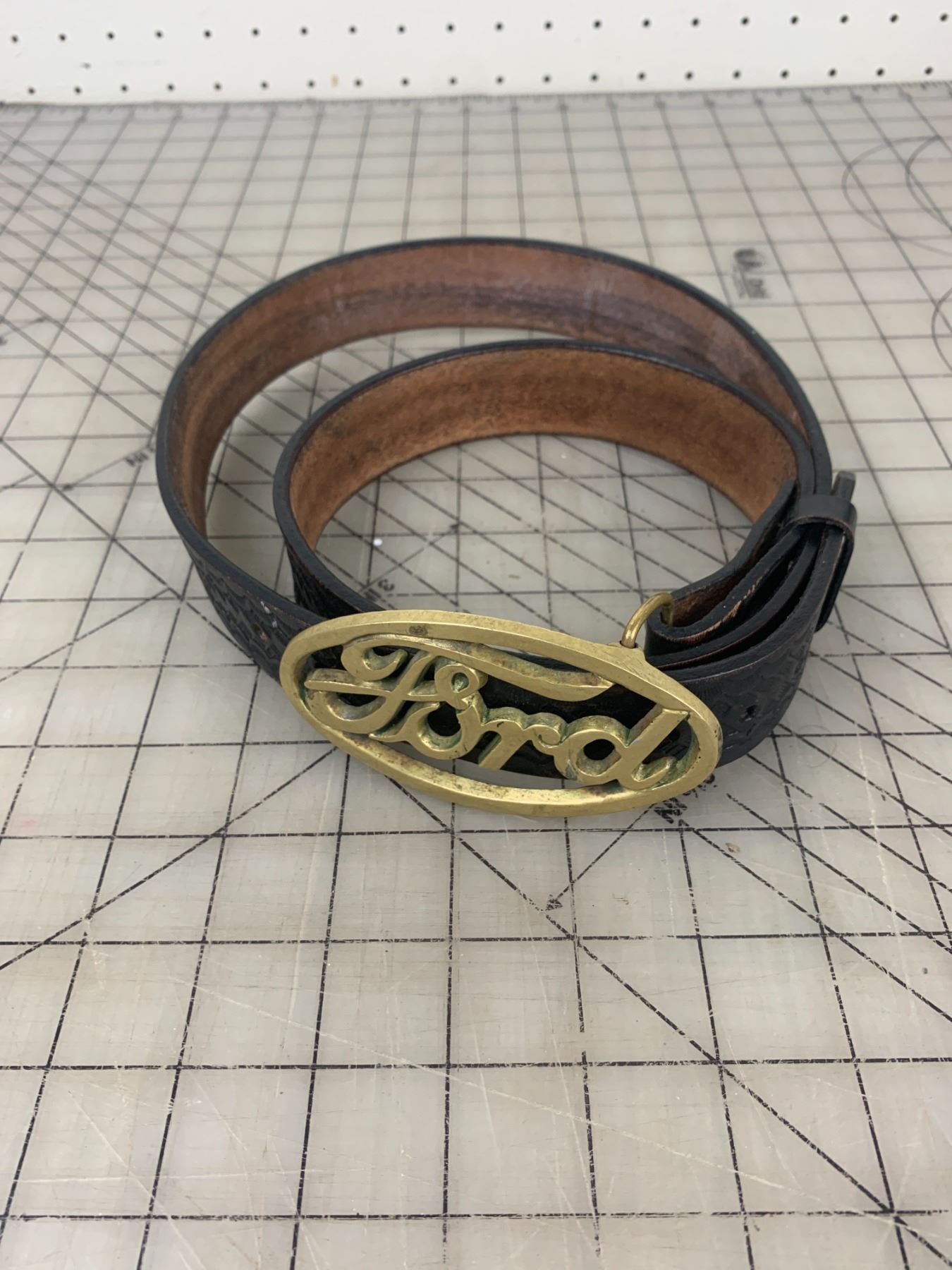 VINTAGE FORD BELT BUCKLE AND LEATHER BELT