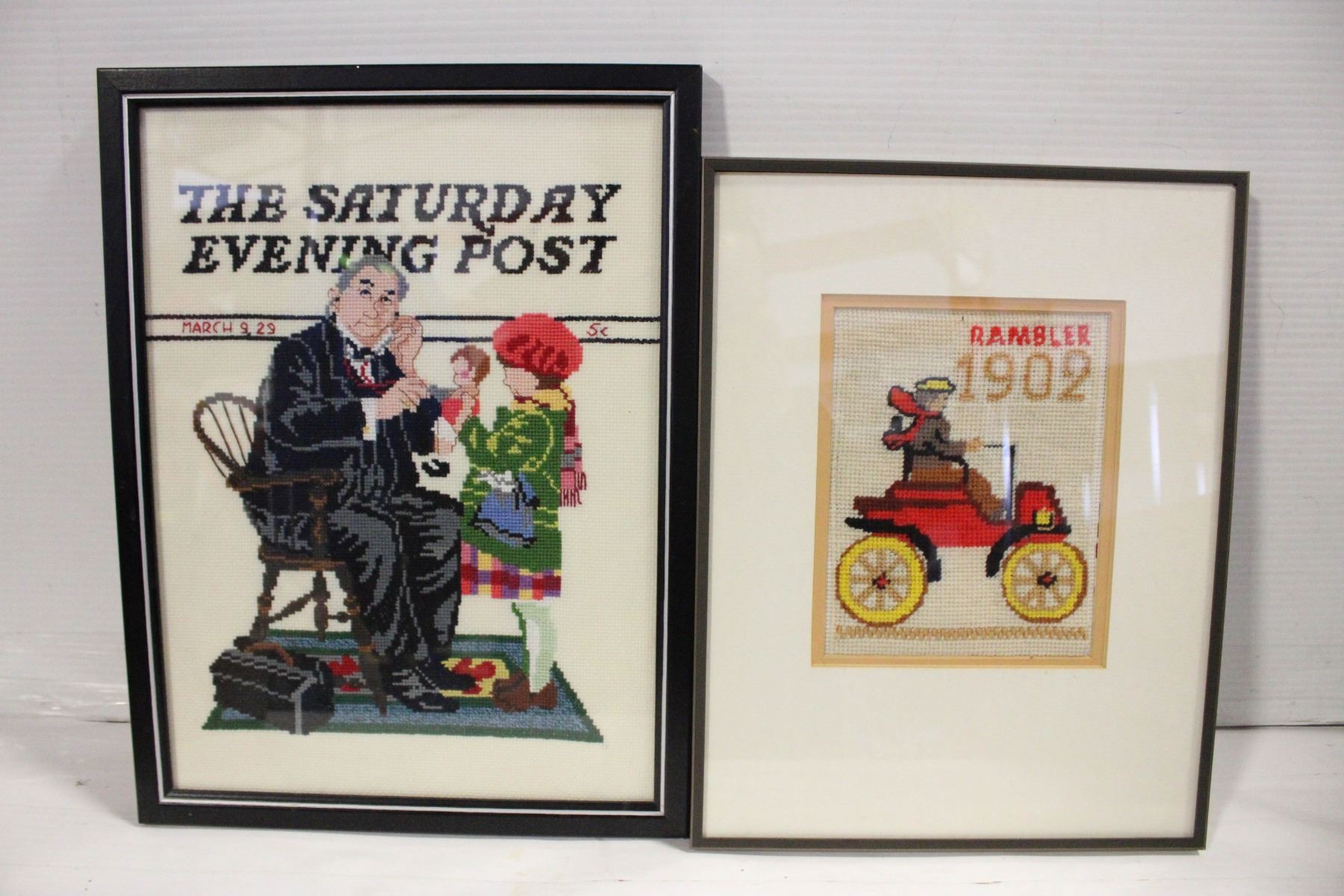 VINTAGE FRAMED CROSS STITCH- LOT OF 2