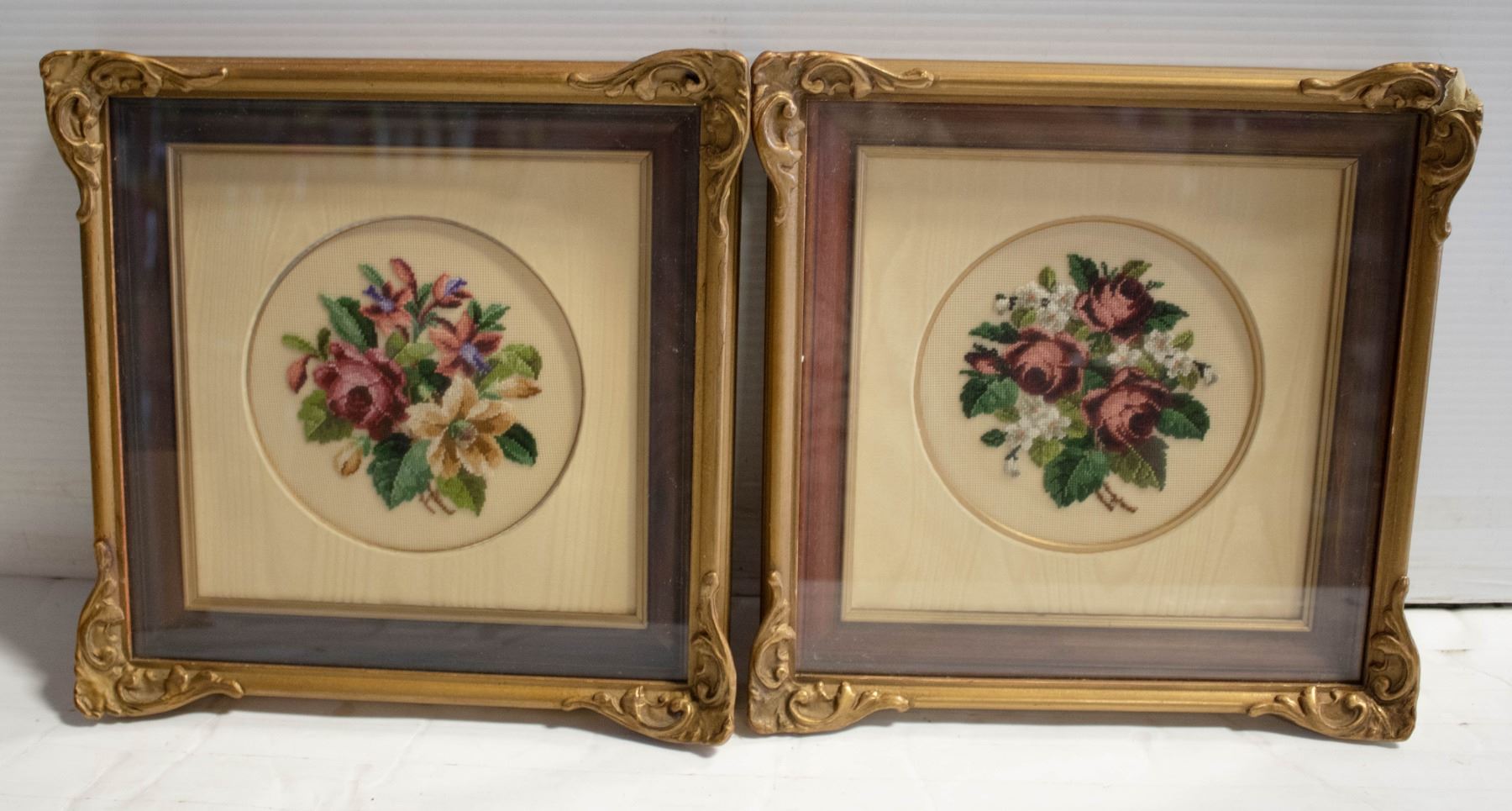VINTAGE FRAMED FLORAL CROSS STITCH
