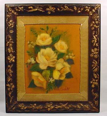 VINTAGE FRAMED FLORAL PAINTING SIGNED NINA COOLEY - Approx. 12.5" x 14.25"