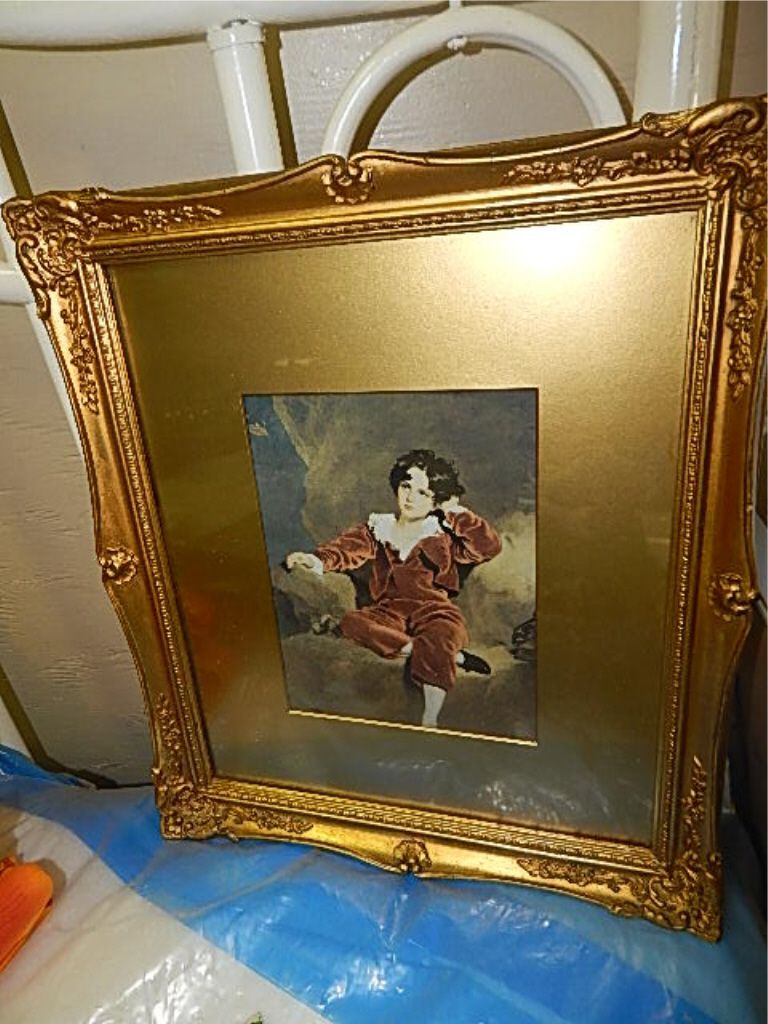VINTAGE FRAMED PICTURE - BROWN BOY SITTING