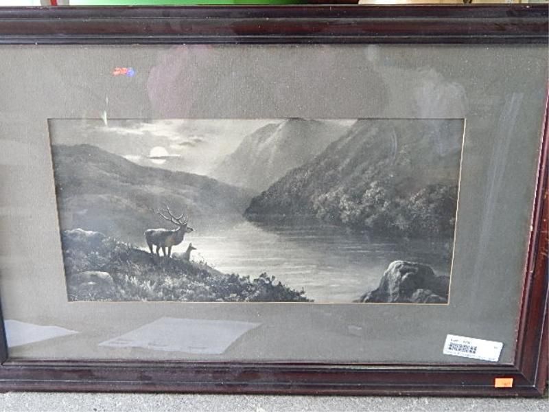 VINTAGE FRAMED PICTURE - DEER - SIGNED
