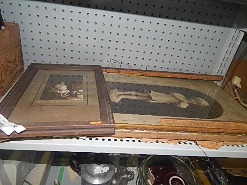 VINTAGE FRAMED PICTURE - (FRAME AS-IS) BOY STATUE - NEWSPAPER IN BACK DATED 1882 AND FRAMED PICTURE CHILD SITTING = 2 TOTAL
