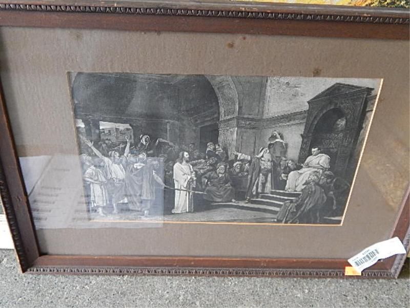 VINTAGE FRAMED PICTURE - JESUS BEFORE PONTIUS PILOT
