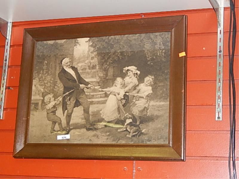 VINTAGE FRAMED PICTURE - ROPE PULLING