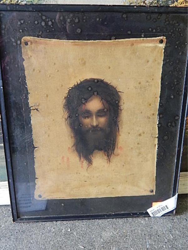 VINTAGE FRAMED PICTURE - VERONICA'S HANDKERCHIEF - EYES OPEN & CLOSE