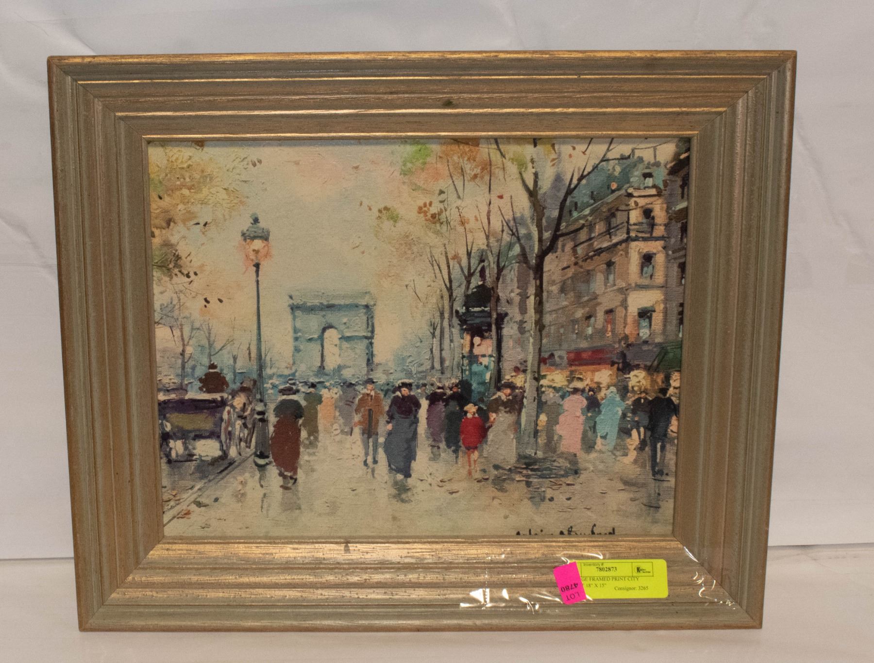 VINTAGE FRAMED PRINT CITY STREET 18" X 15"