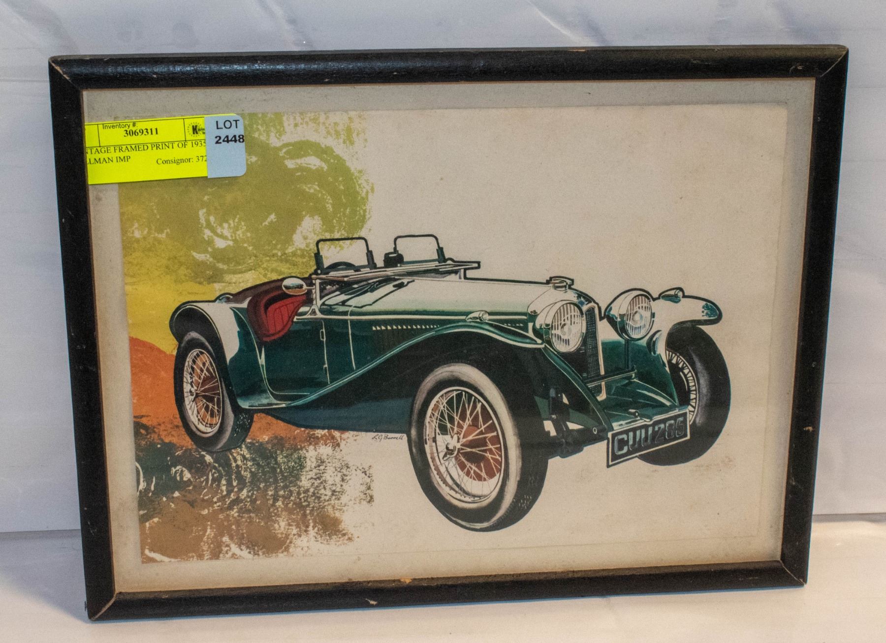 VINTAGE FRAMED PRINT OF 1935 HILLMAN IMP