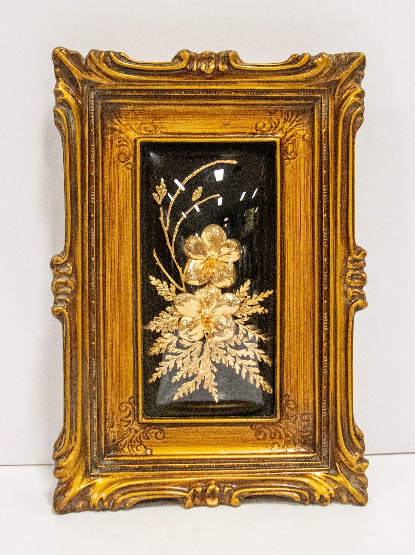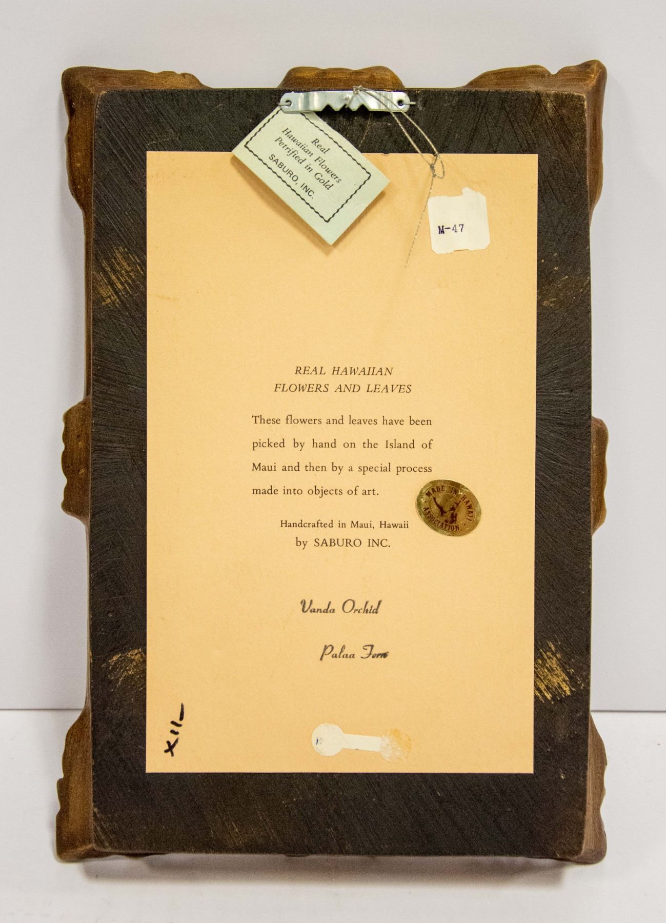 FLOWERS AND LEAVES HANDCRAFTED IN HAWAII PETRIFIED IN 24 KT GOLD (LABELLED AT BACK)