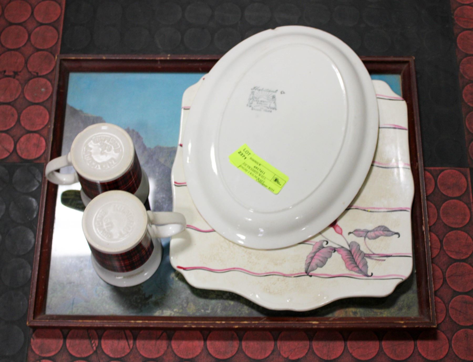 ENGLAND MUGS + HABITANT SERVING TRAY + OLD MYOTT SERVING PLATE (5PCS TOTAL) **ALL ITEMS MUST BE REMOVED BY 5PM SATURDAY, MAY 17TH 2025. ALL REMAINING ITEMS WILL BE SUBJECT TO A $6.00 PER DAY STORAGE CHARGE. ANY ITEMS REMAINING AFTER MONDAY, JUNE 2ND 2025 WILL BE CONSIDERED FORFEITED. NO REFUNDS WILL BE ISSUED FOR FORFEITED ITEMS. TO SCHEDULE A PICK UP APPOINTMENT CLICK HERE