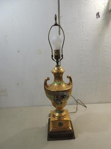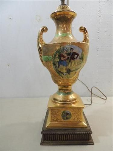 VINTAGE FRENCH PROVINCIAL 24 KT GOLD CERAMIC LAMP. 28"H. NO SHADE. AS SHOWN. VIEW PICTURE FOR DETAIL.