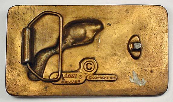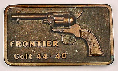VINTAGE FRONTIER COLT 44-40 BRASS BELT BUCKLE - Dated 1975 and marked Adezy Denver on back