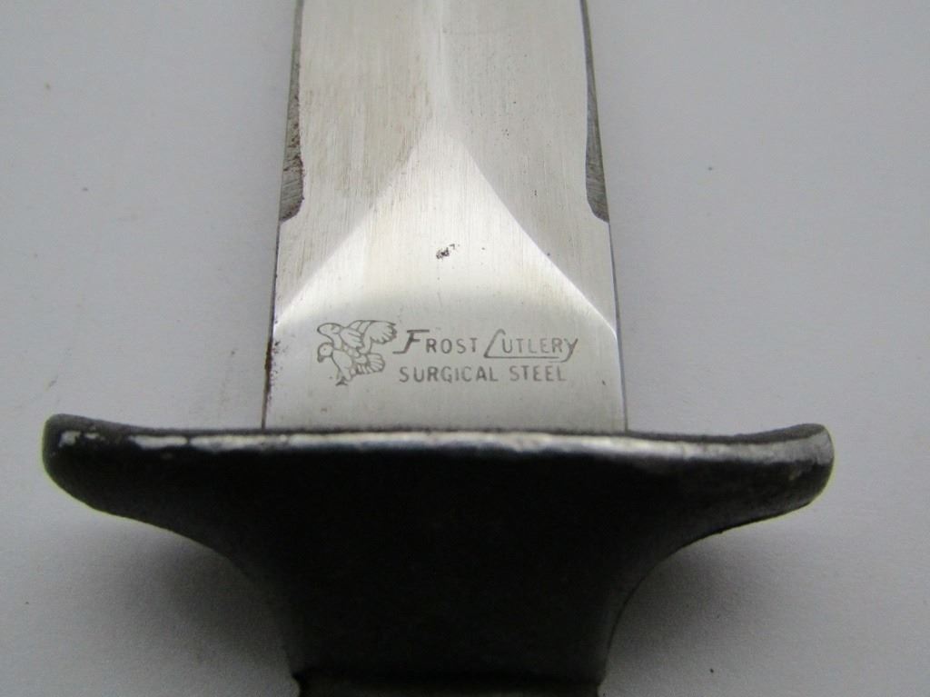 SOME SCRATCHES ON THE HANDLE BUT IN OTHERWISE GOOD CONDITION. COMES WITH SHEATH. BLADE IS 3.5" LONG.