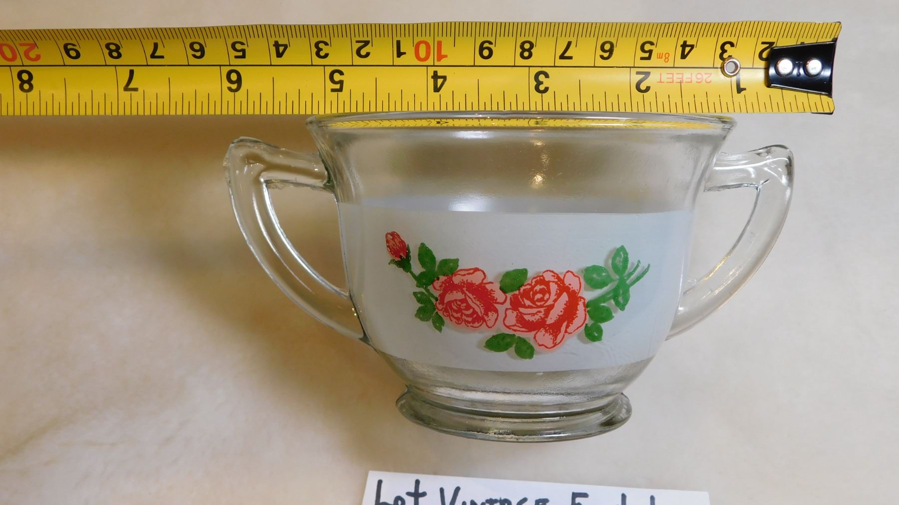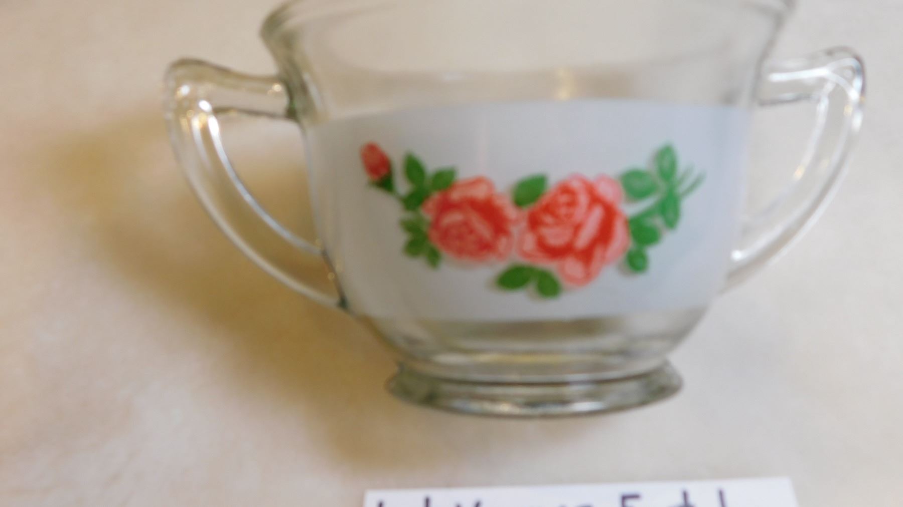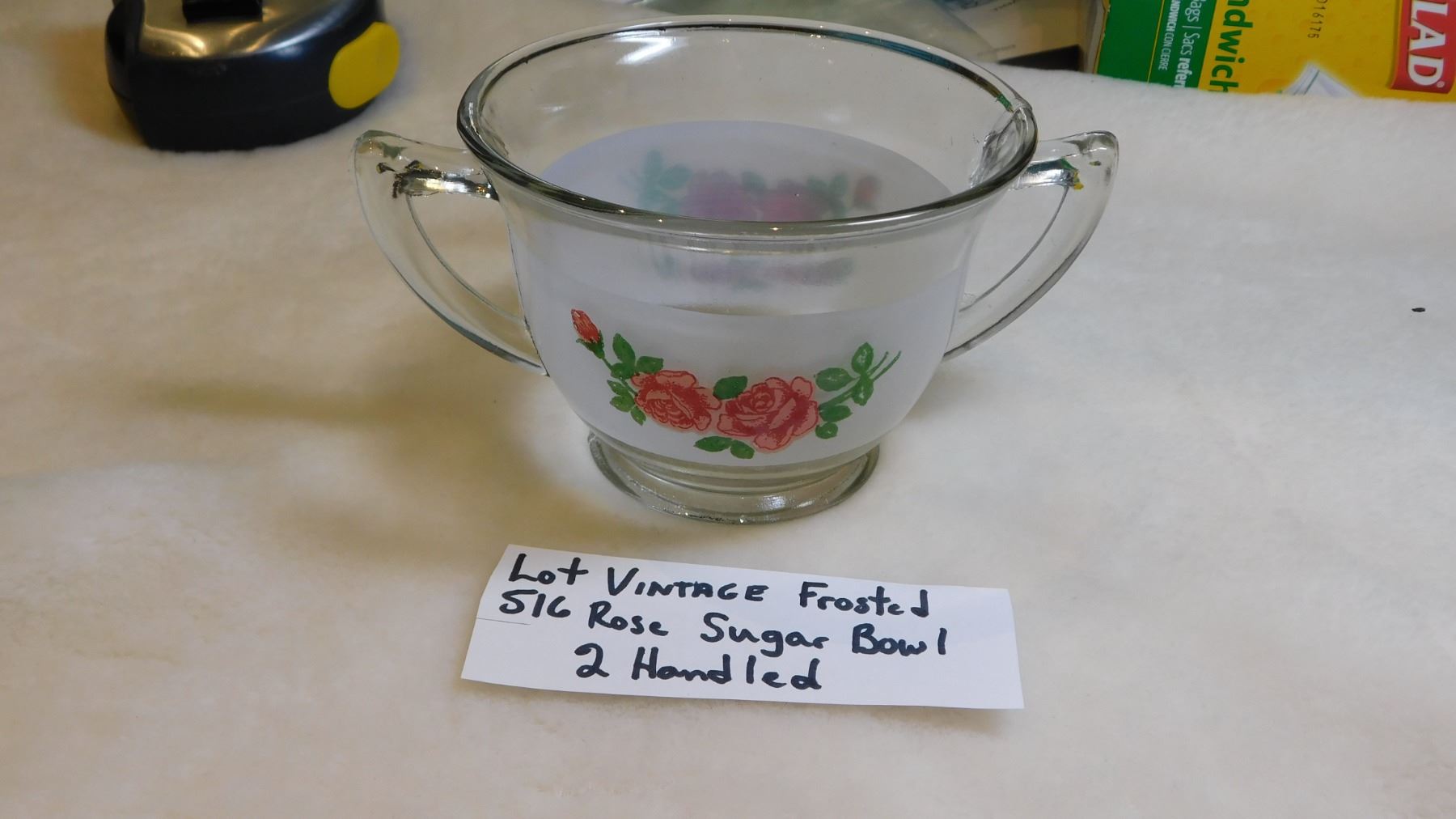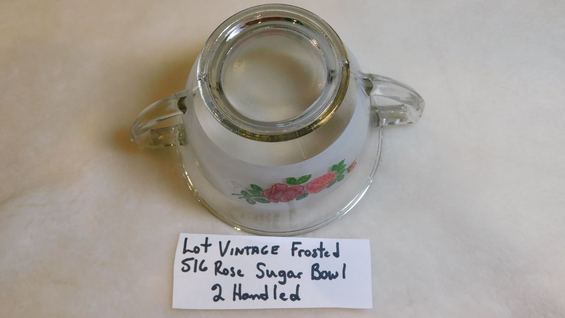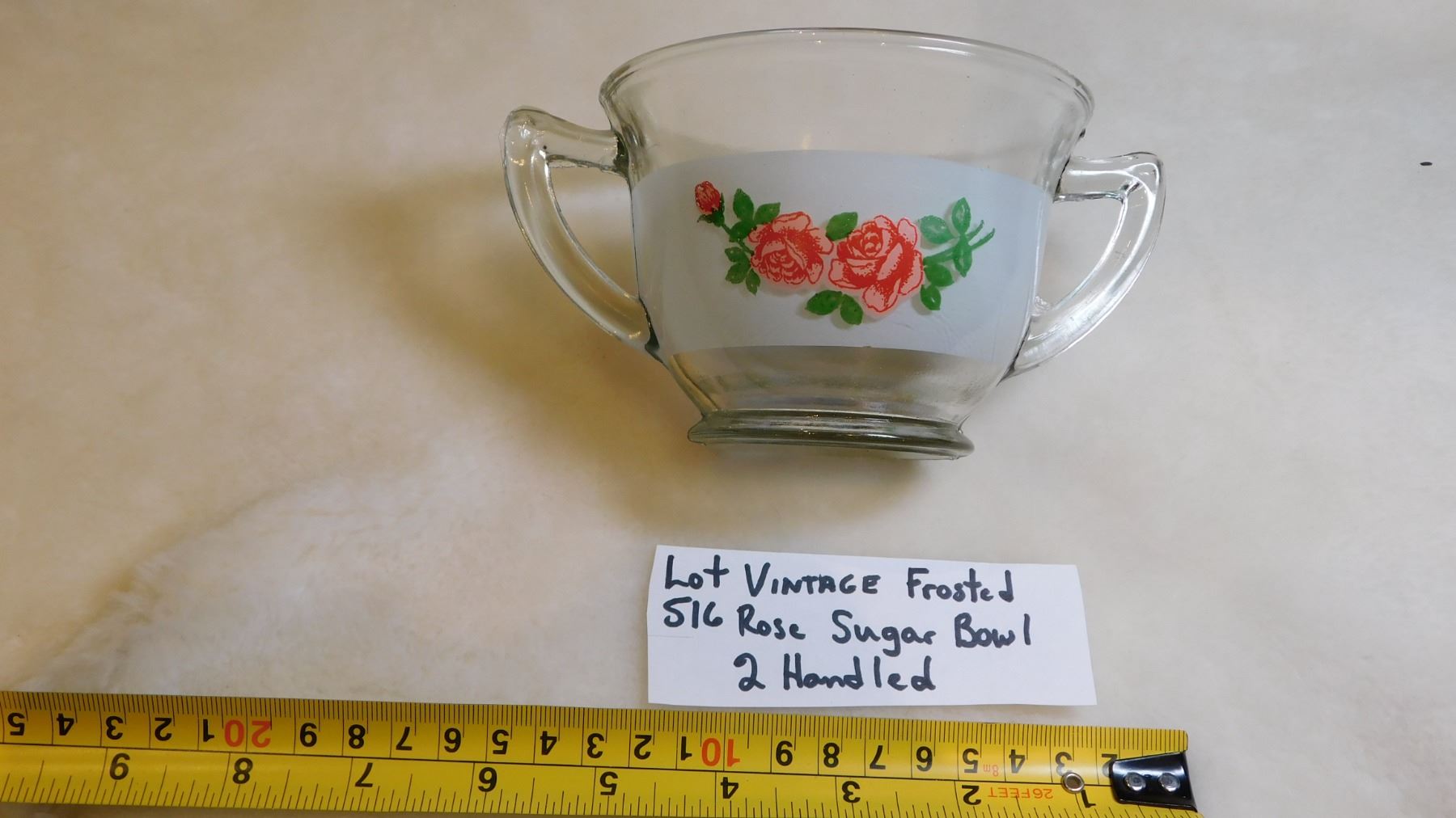 VINTAGE FROSTED ROSE, TWO HANDLED SUGAR BOWL