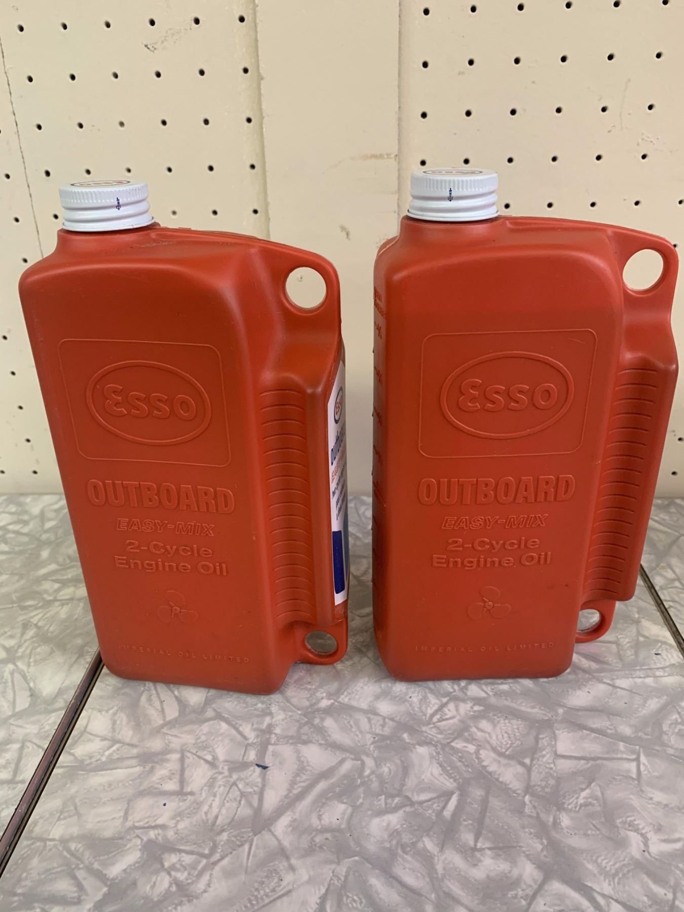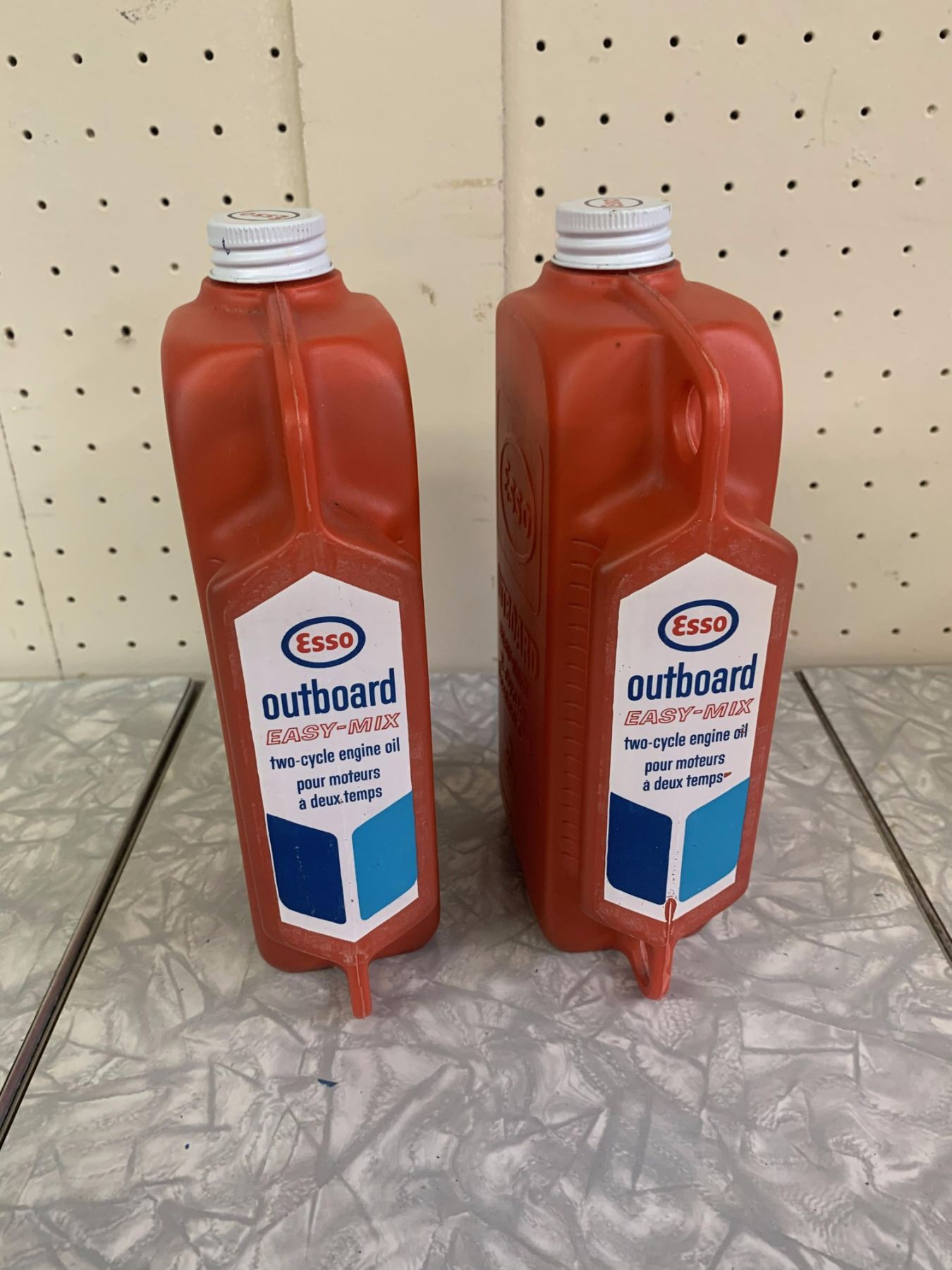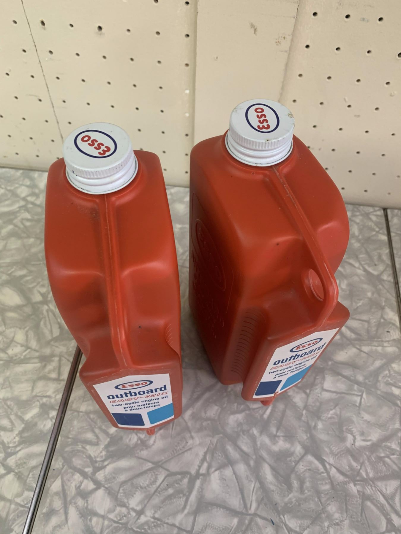 VINTAGE FULL ESSO OUTBOARD MOTOR OIL JUGS
