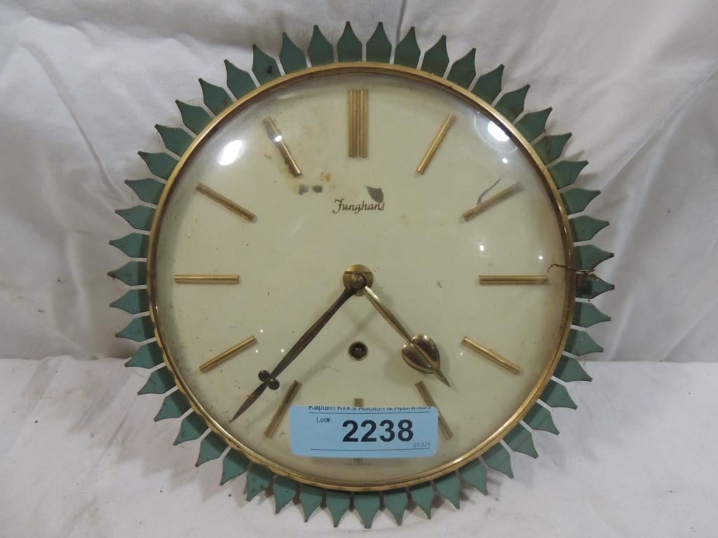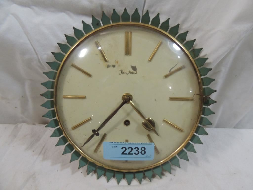 FLOWER STYLE CLOCK, RING CLOCK, GERMAN CLOCK, WIND UP CLOCK, FUNGHANS, DECORATIVE VINTAGE CLOCK AS SHOWN SEE PHOTO FOR MORE DETAILS.