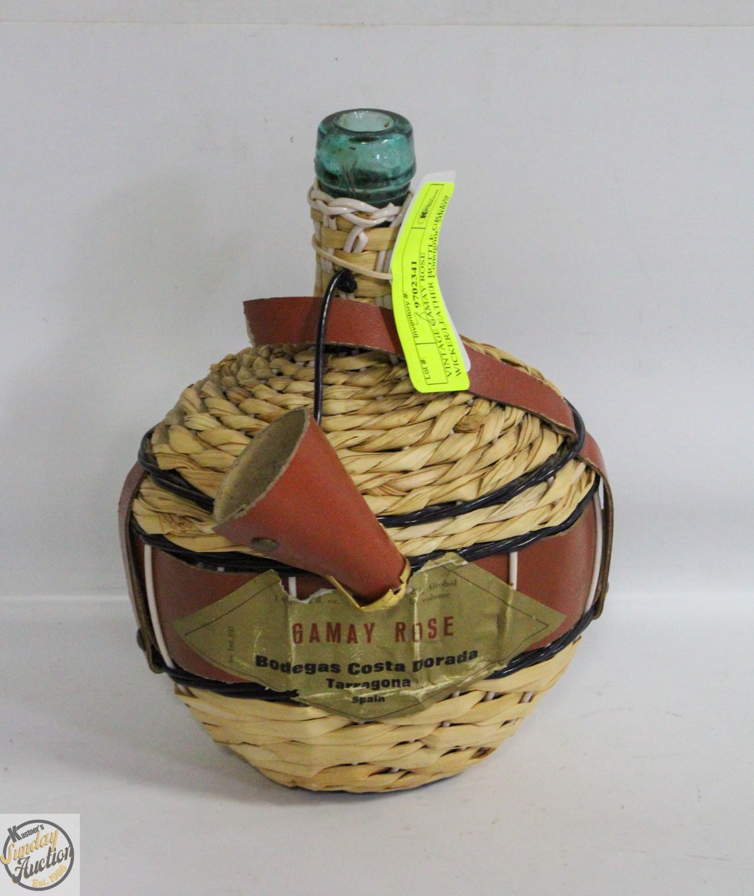 VINTAGE GAMAY ROSE WICKER/LEATHER BOTTLE GREEN