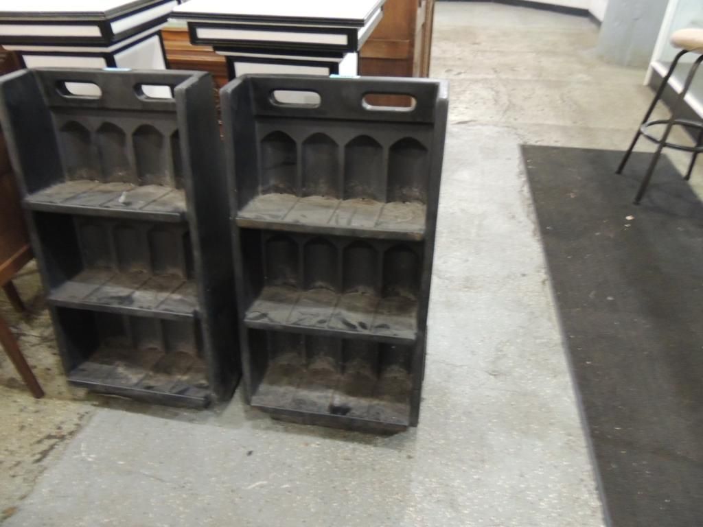 VINTAGE PATROLIANA GAS STATION QUART DISPLAY STANDS ON WHEELS HOLDS OLD SCHOOL CANS. VINTAGE AS SHOWN SEE PHOTO FOR MORE DETAILS.