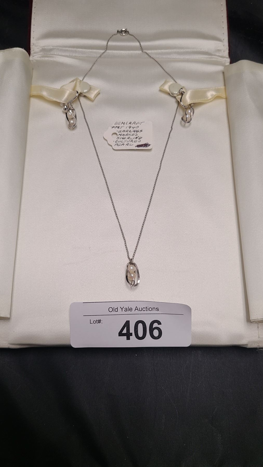 VINTAGE GEMCRAFT CULTURED PEARL STERLING SILVER NECKLACE & EARRING SET