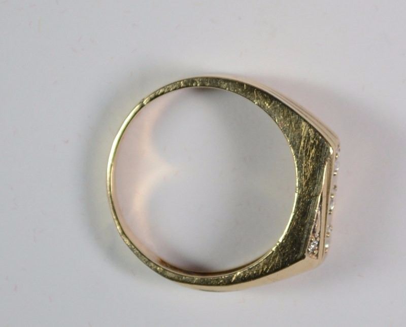 ACROSS THE TOP WITH ONE SMALL DIAMOND IN EACH, THE TOP & BOTTOM CORNERS. SIZE 10. TREAT YOURSELF! THIS RING HAS LOTS OF LIFE IN IT YET. SILVERTOWNE AUCTIONS IS KNOWN FOR QUALITY & SERVICE. REGISTER TO BID! ESTIMATE $1000-$1500