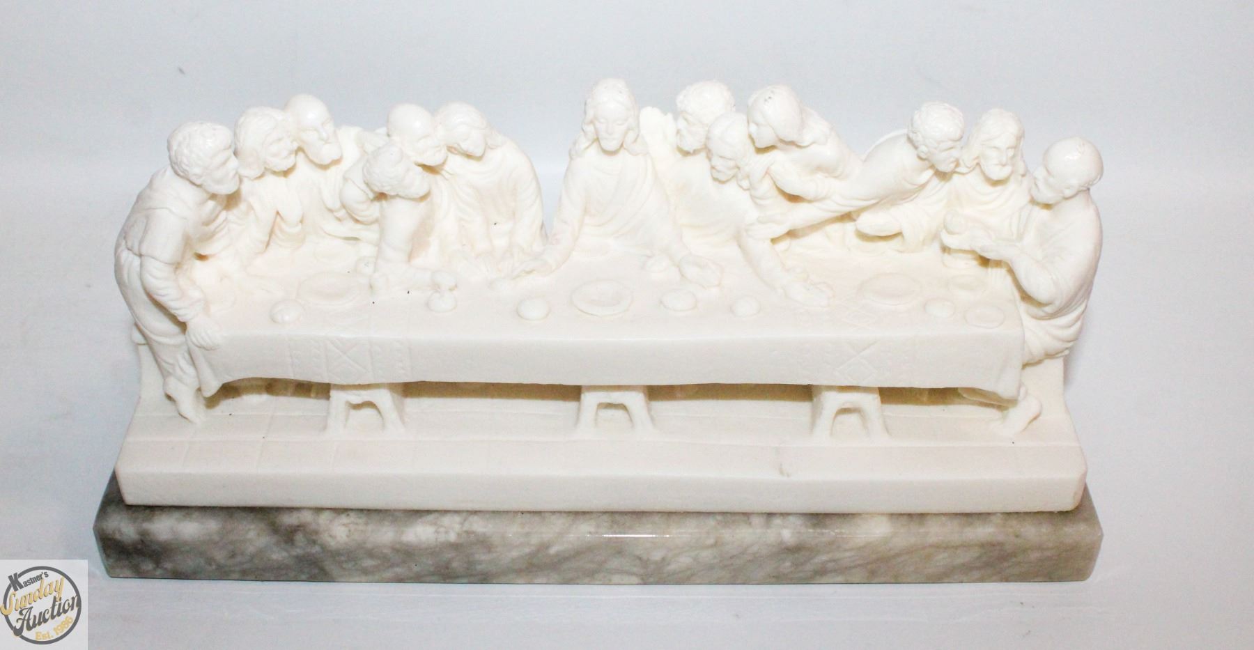ON MARBLE BASE 'LAST SUPPER" HANDCRAFTED ITALY WITH LABEL **ALL ITEMS MUST BE REMOVED BY 5PM SATURDAY, SEPTEMBER 6TH 2025. ALL REMAINING ITEMS WILL BE SUBJECT TO A $6.00 PER DAY STORAGE CHARGE. ANY ITEMS REMAINING AFTER MONDAY, SEPTEMBER 22ND 2025 WILL BE CONSIDERED FORFEITED. NO REFUNDS WILL BE ISSUED FOR FORFEITED ITEMS. TO SCHEDULE A PICK UP APPOINTMENT CLICK HERE