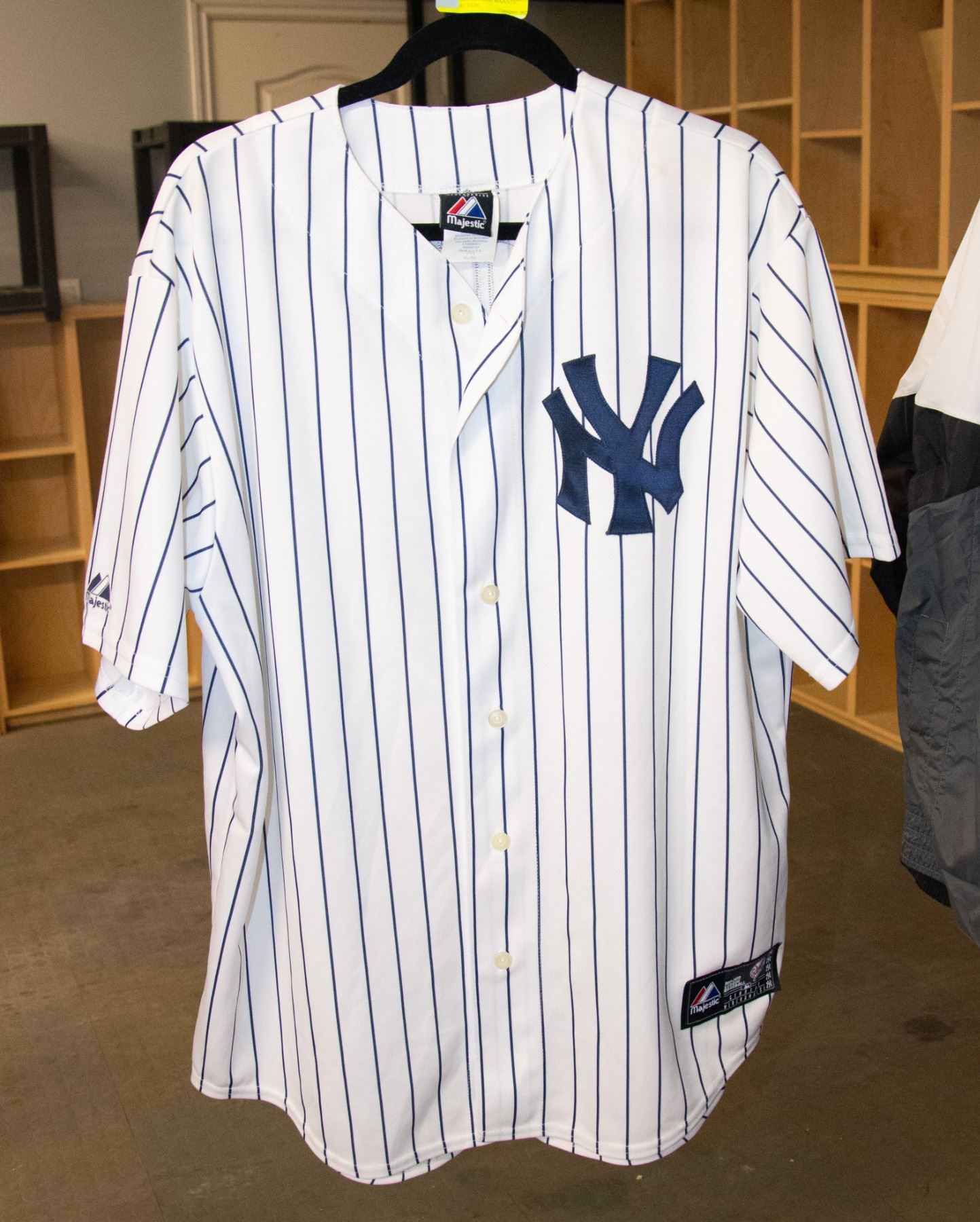BUTTON-DOWN BLUE STRIPED JERSEY - DEREK JETER #2 - MEN'S SIZE XL**ALL ITEMS MUST BE REMOVED BY 5PM MONDAY, OCTOBER 10TH, 2022. ALL REMAINING ITEMS WILL BE SUBJECT TO A $6.00 PER DAY STORAGE CHARGE. ANY ITEMS REMAINING AFTER MONDAY, OCTOBER 24TH, 2022 WILL BE CONSIDERED FORFEITED. NO REFUNDS WILL BE ISSUED FOR FORFEITED ITEMS. TO SCHEDULE A PICK UP APPOINTMENT CLICK HERE