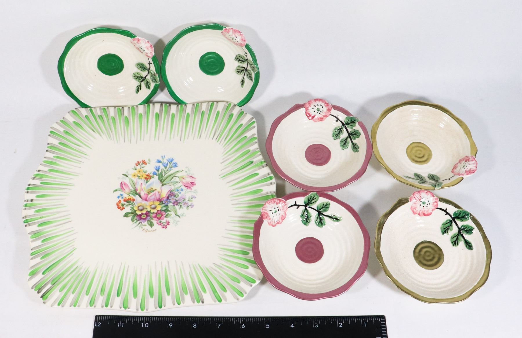 SHORIER & SON LTD ENGLAND SERVING BOWLS SOLD WITH MYOTT STAFFORDSHIRE ENGLAND HAND PAINTED PLATE