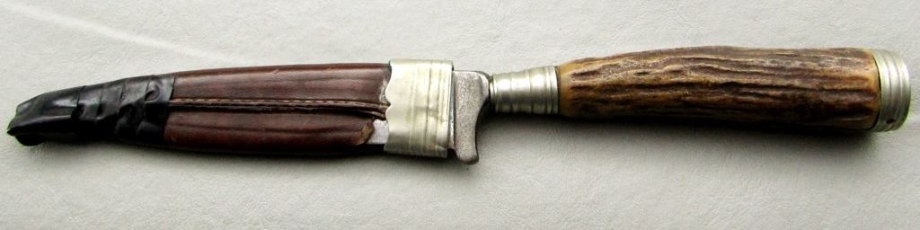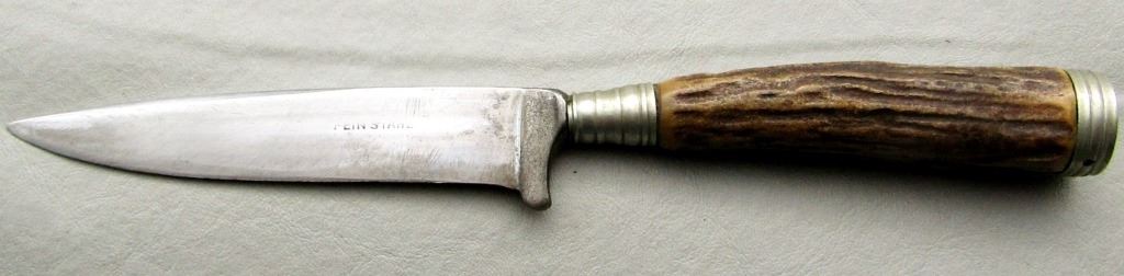 SHEATH. SLIGHT DAMAGED KNIFE. MARKED FEIN STAHL. HUNTING/FISHING KNIFE. 5 INCH BLADE.