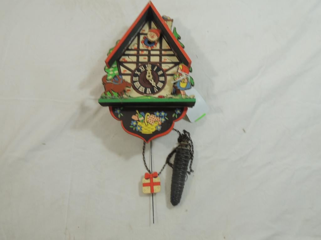 CUCKOO CLOCK, GERMAN CLOCK, COO COO CLOCK, WORKING CLOCK, WOODEN DETAIL CLOC, BLACK FOREST CLOCK, VINTAGE COLLECTORS CLOCK, AS SHOWN SEE PHOTO FOR MORE DETAILS.