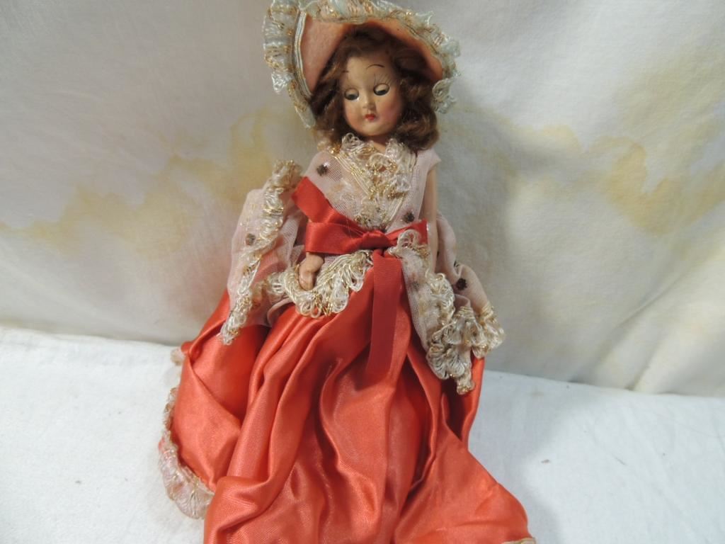 VOUGE GINNY DOLL? 1950s ERA DOLL, SLEEP EYES, ORGINAL DRESS, BROWN HAIR, PLASTIC DOLL, HARD PLASTIC DOLL, AS SHOWN SEE PHOTO FOR MORE DETAILS.