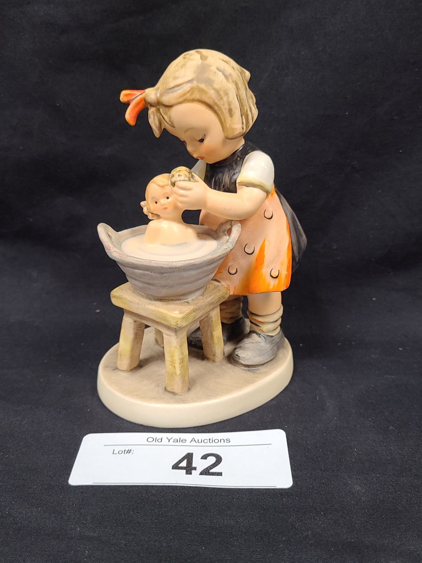 VINTAGE GIRL GIVING DOLLY A BATH HUMMEL APPROX 5"