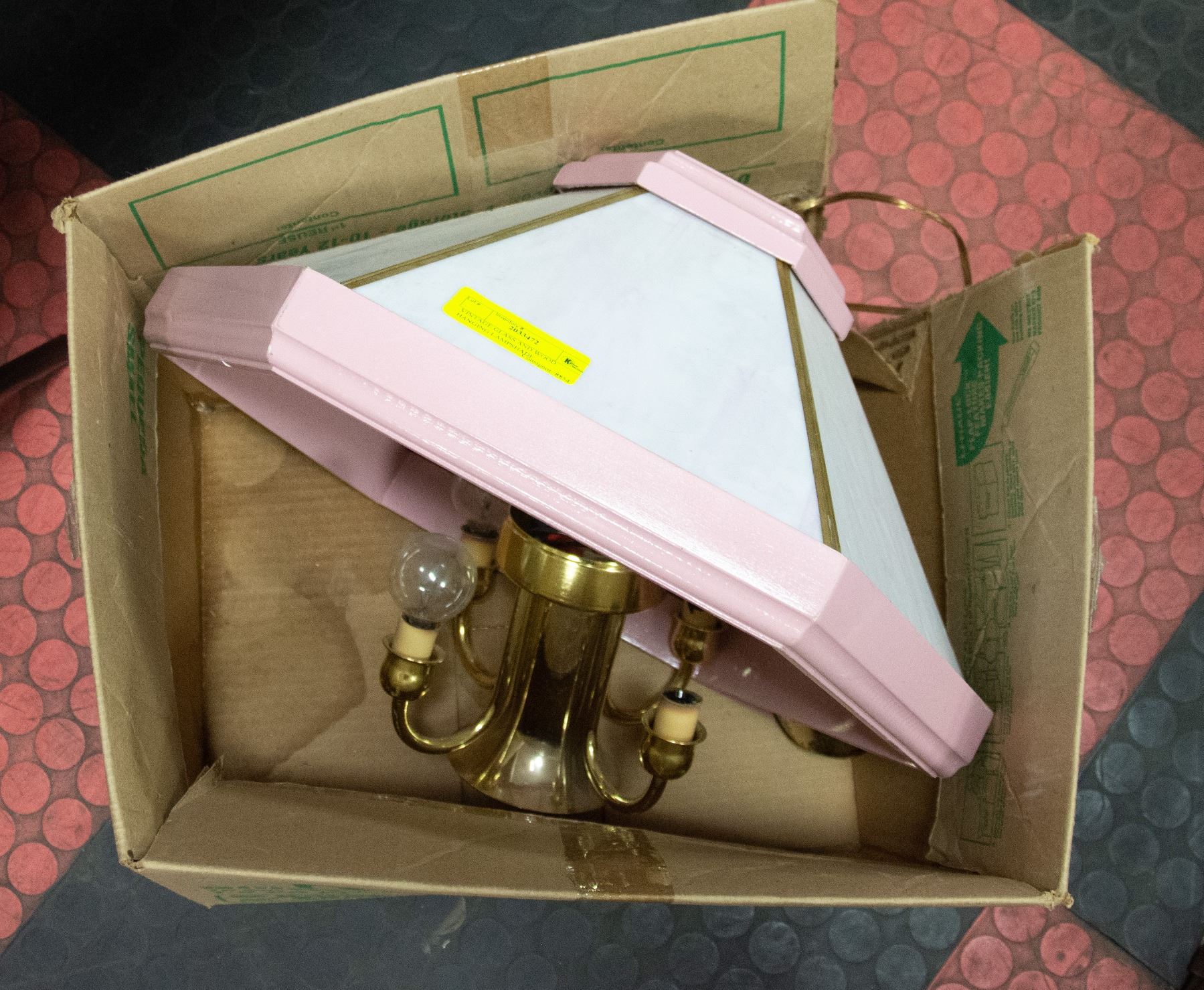VINTAGE GLASS AND WOOD. HANGING LAMPSHADE