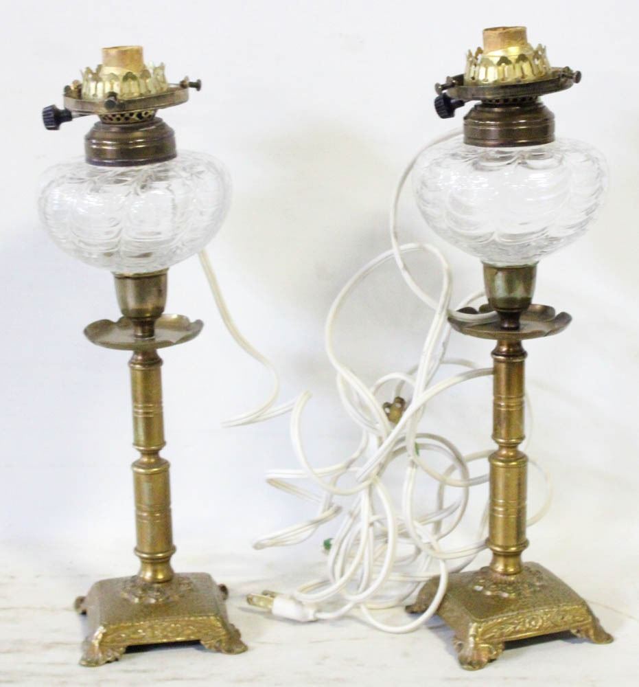 VINTAGE GLASS & BRASS CANDLEOBRA KEROSENE LAMPS