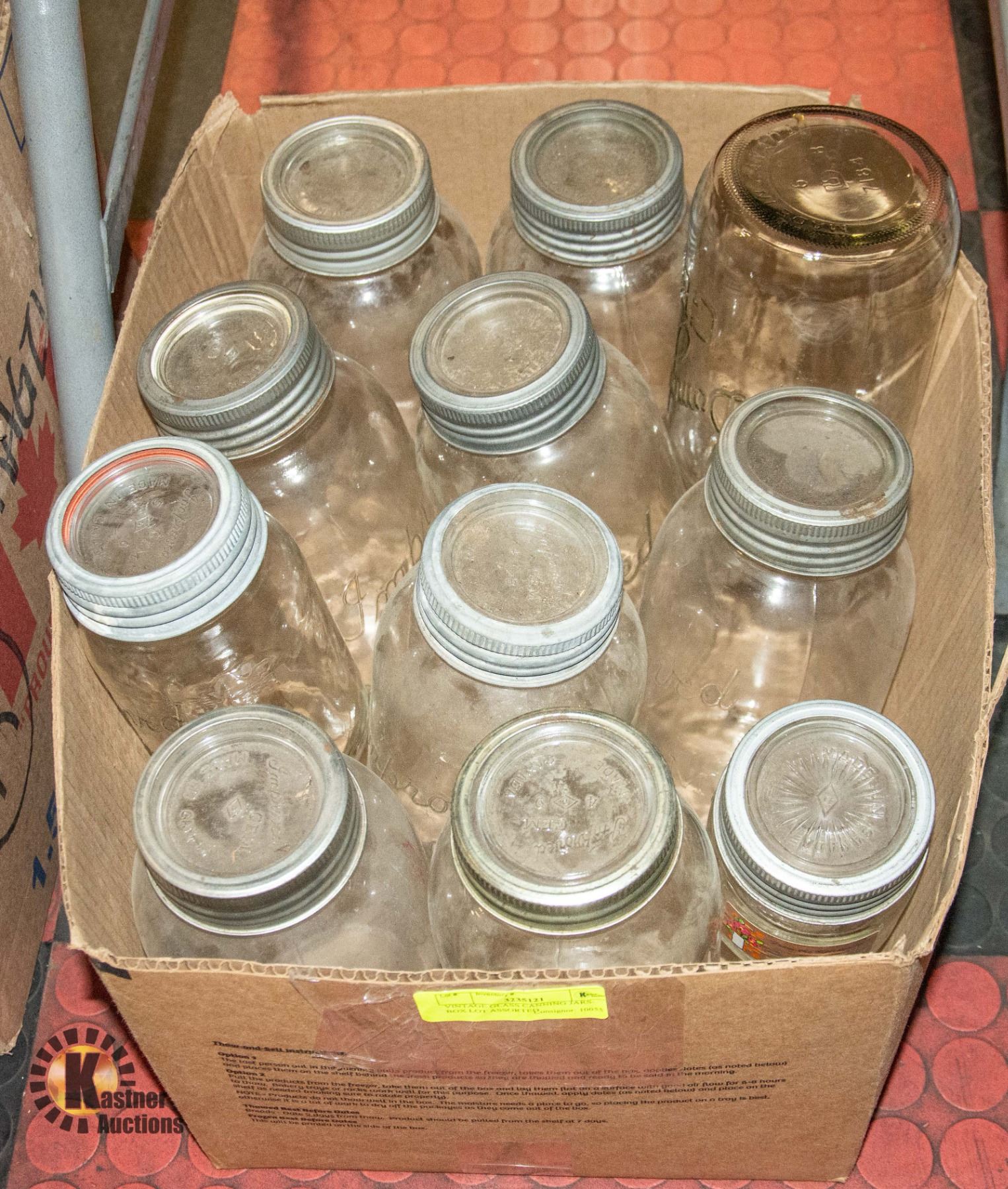 VINTAGE GLASS CANNING JARS- BOX LOT ASSORTED