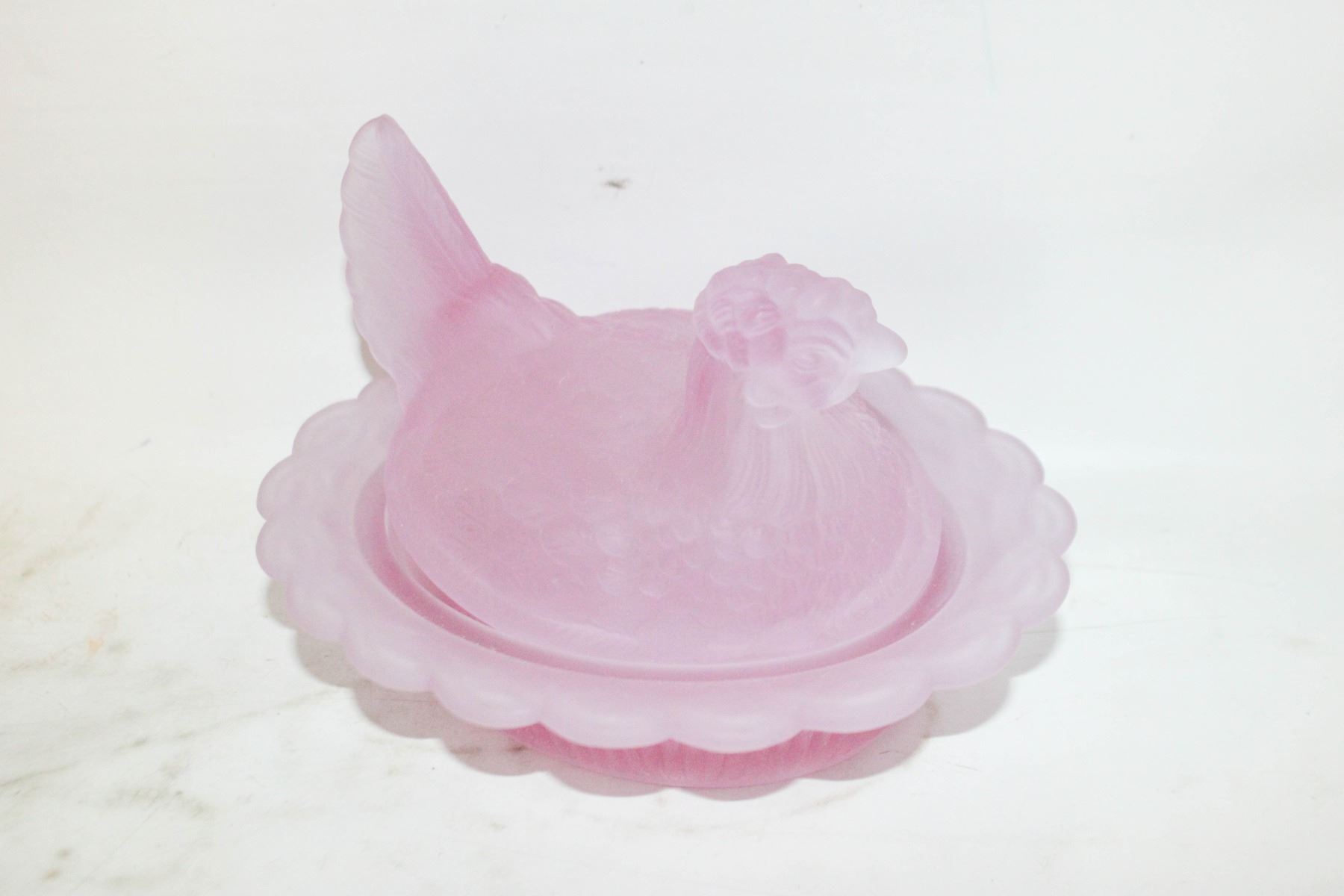 VINTAGE GLASS CHICKEN LIDDED DISH