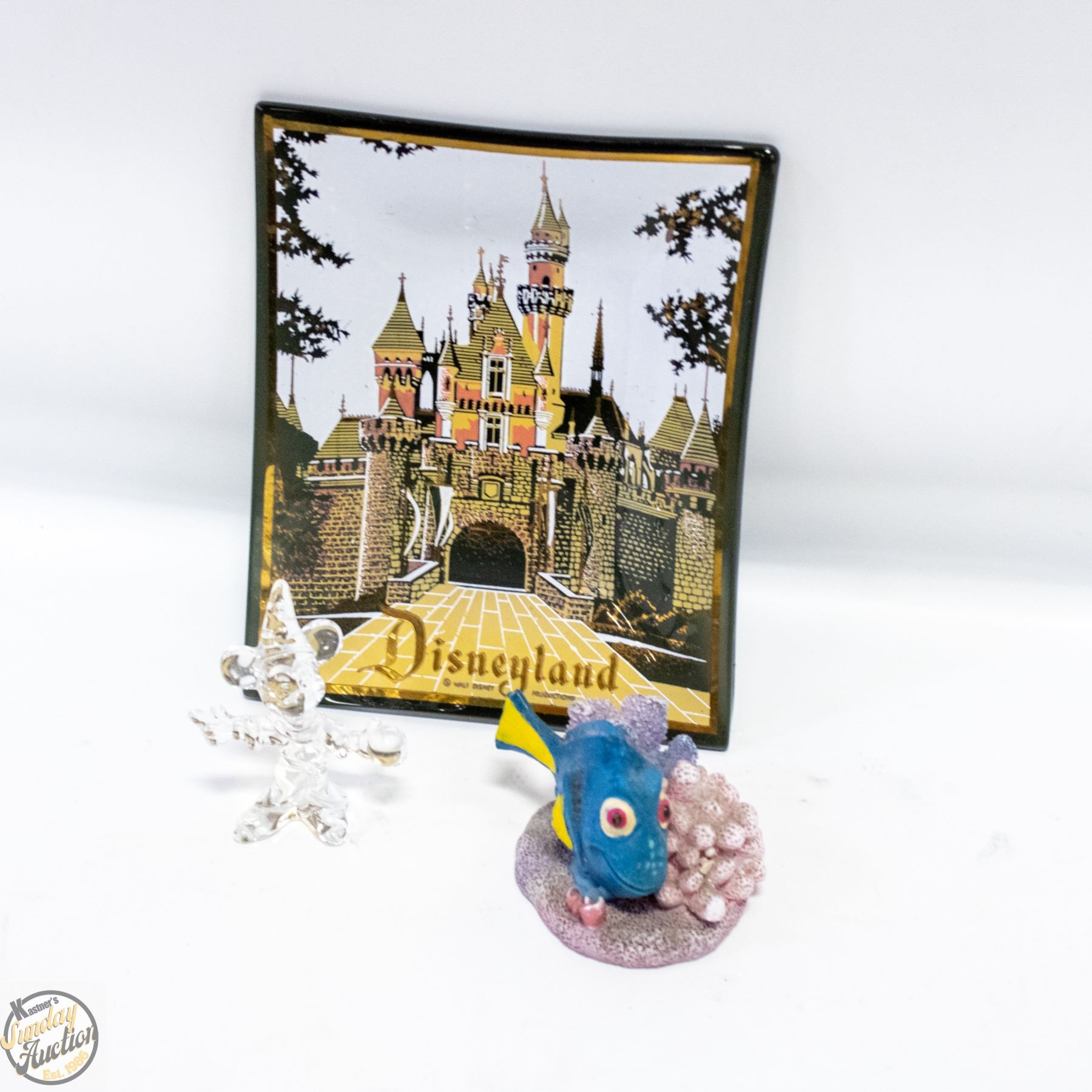 CLEAR ART GLASS MICKEY MOUSE + CERAMIC DORY FISH FIGURE **ALL ITEMS MUST BE REMOVED BY 5PM SATURDAY, MARCH 28TH 2026. ALL REMAINING ITEMS WILL BE SUBJECT TO A $6.00 PER DAY STORAGE CHARGE. ANY ITEMS REMAINING AFTER MONDAY, APRIL 20TH 2026 WILL BE CONSIDERED FORFEITED. NO REFUNDS WILL BE ISSUED FOR FORFEITED ITEMS. TO SCHEDULE A PICK UP APPOINTMENT CLICK HERE