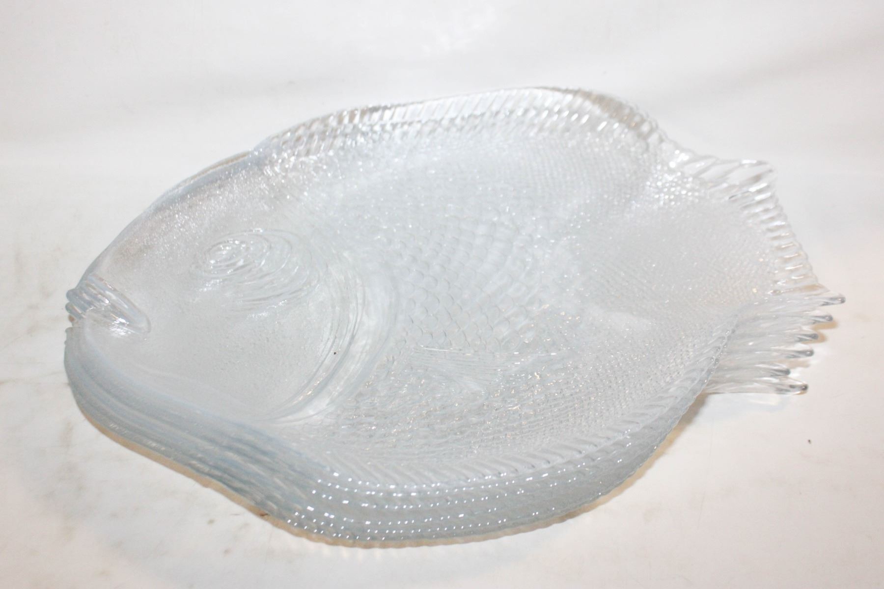 VINTAGE GLASS FISH FIGURAL PLATTER/PLATES LOT