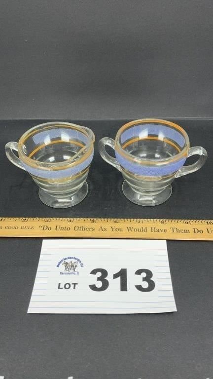 VINTAGE GLASS FOOTED CREAMER, SUGAR