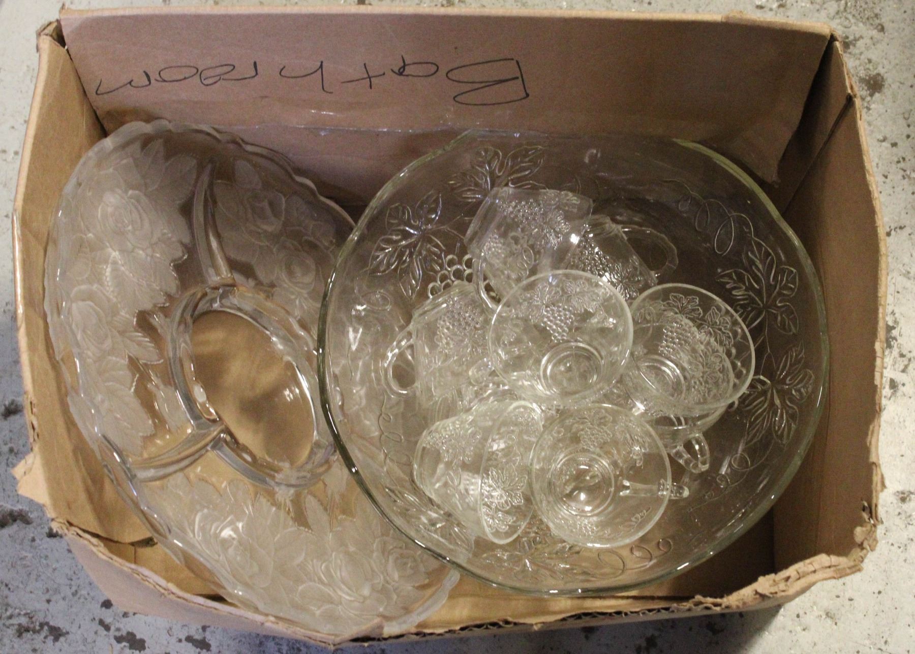 VINTAGE GLASS PUNCH BOWL SET AND TRAY