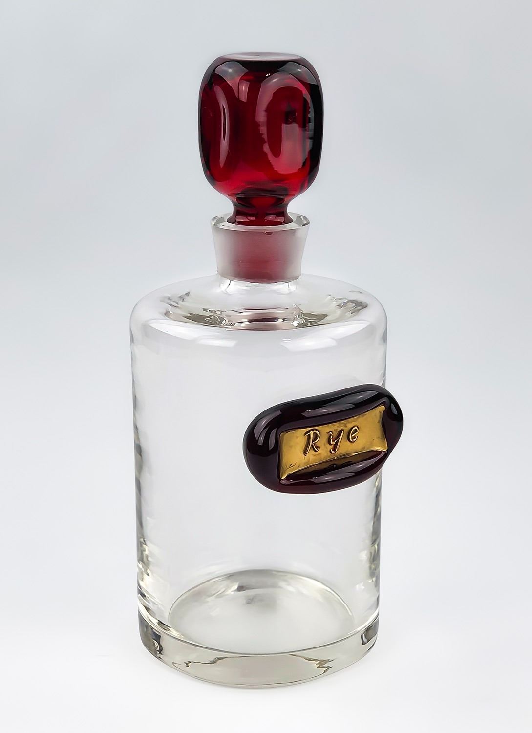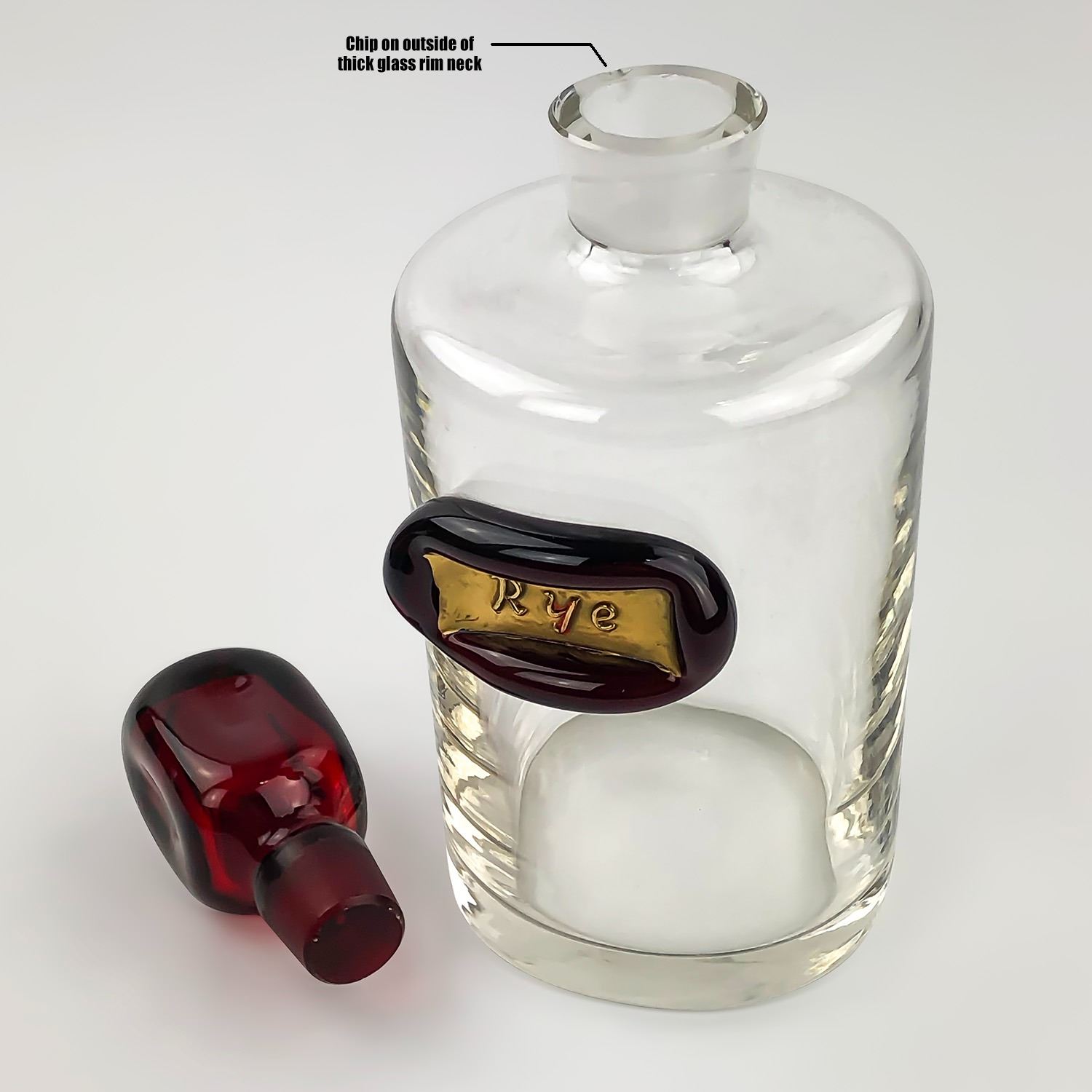 #8591 - VINTAGE THICK GLASS RYE BOTTLE, 10.75” (27 CM) TALL W/STOPPER, 4.25” (11 CM) DIA. BASE. BOTTLE NOT PERFECTLY ROUND… KIND OF SQUARISH A LITTLE***ITEM(S) LOCATED IN LETHBRIDGE ALBERTA. ALL ITEMS IN THIS AUCTION QUALIFY FOR OUR FREE TRANSPORT TO EDMONTON SERVICE. WORLDWIDE SHIPPING AVAILABLE