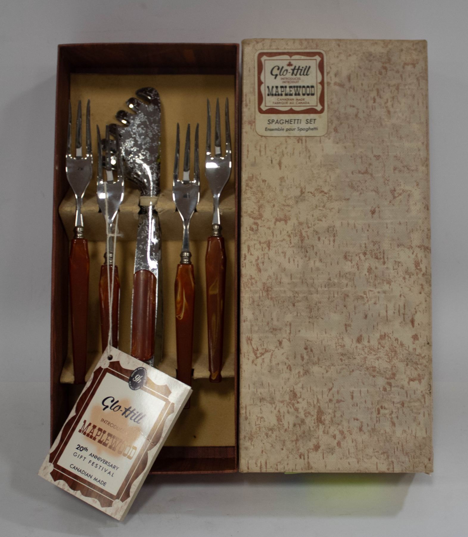 ANNIVERSARY SPAGHETTI SET IN ORIGINAL BOX. BAKELITE HANDLES. MADE IN CANADA. **ALL ITEMS MUST BE REMOVED BY 5PM SATURDAY, AUGUST 26TH 2023. ALL REMAINING ITEMS WILL BE SUBJECT TO A $6.00 PER DAY STORAGE CHARGE. ANY ITEMS REMAINING AFTER MONDAY, SEPTEMBER 11TH, 2023 WILL BE CONSIDERED FORFEITED. NO REFUNDS WILL BE ISSUED FOR FORFEITED ITEMS. TO SCHEDULE A PICK UP APPOINTMENT CLICK HERE