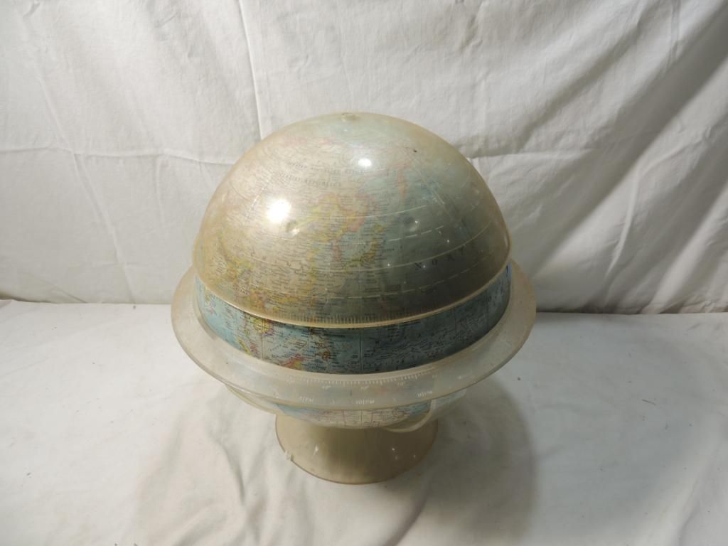 WORLD GLOBE IN CASE AS SHOWN SEE PHOTO FOR MORE DETAILS. COLLECTIBLE ON STAND VINTAGE