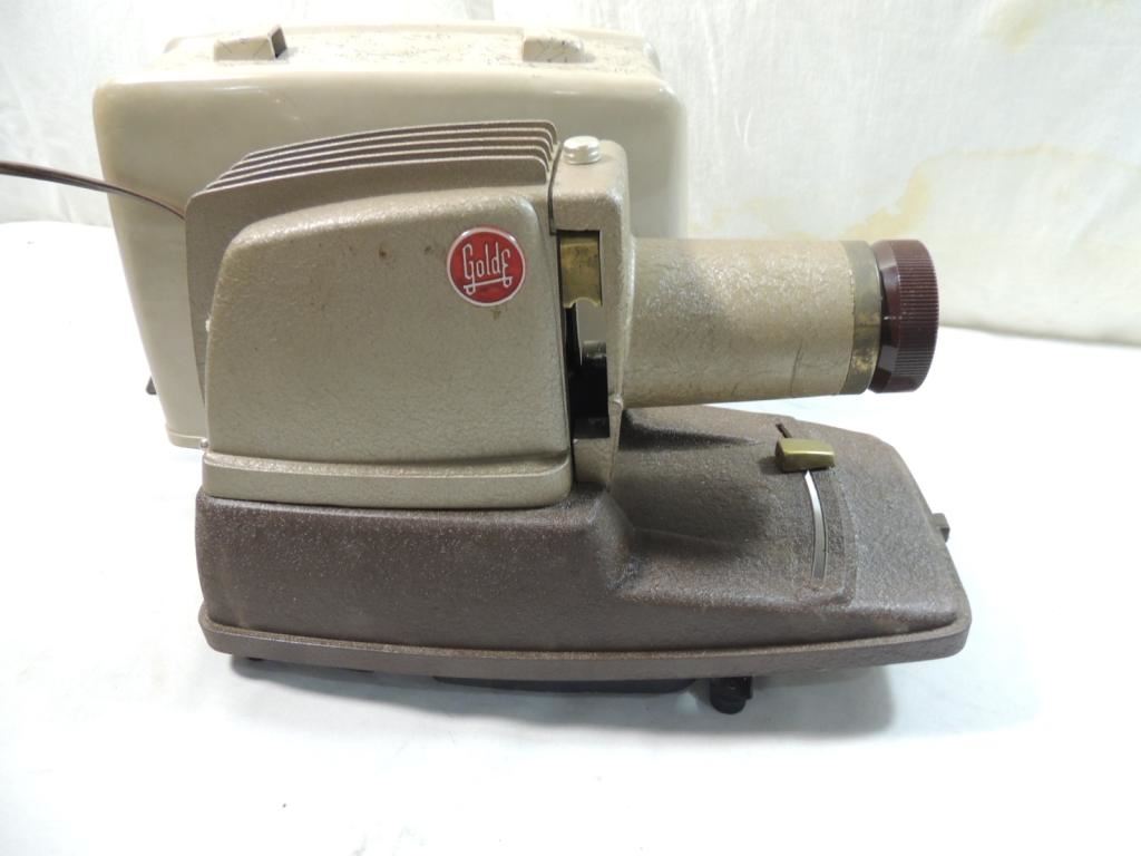 MID CENTRY GOLDE WORKING MANUMATIC SLIDE PROJECTOR VINTAGE ELECTRONICS AS SHOWN SEE PHOTO FOR MORE DETAILS.