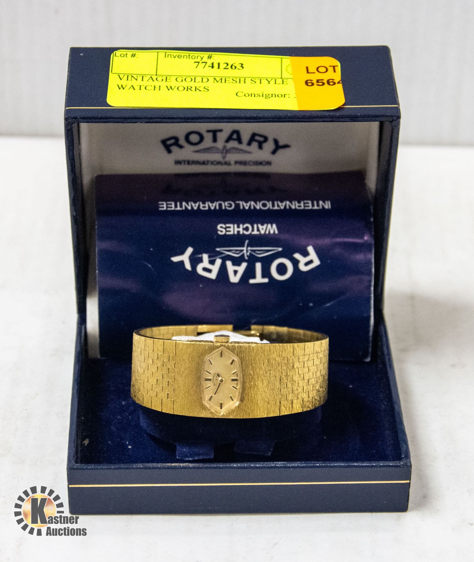 VINTAGE GOLD MESH STYLE WIND WATCH WORKS