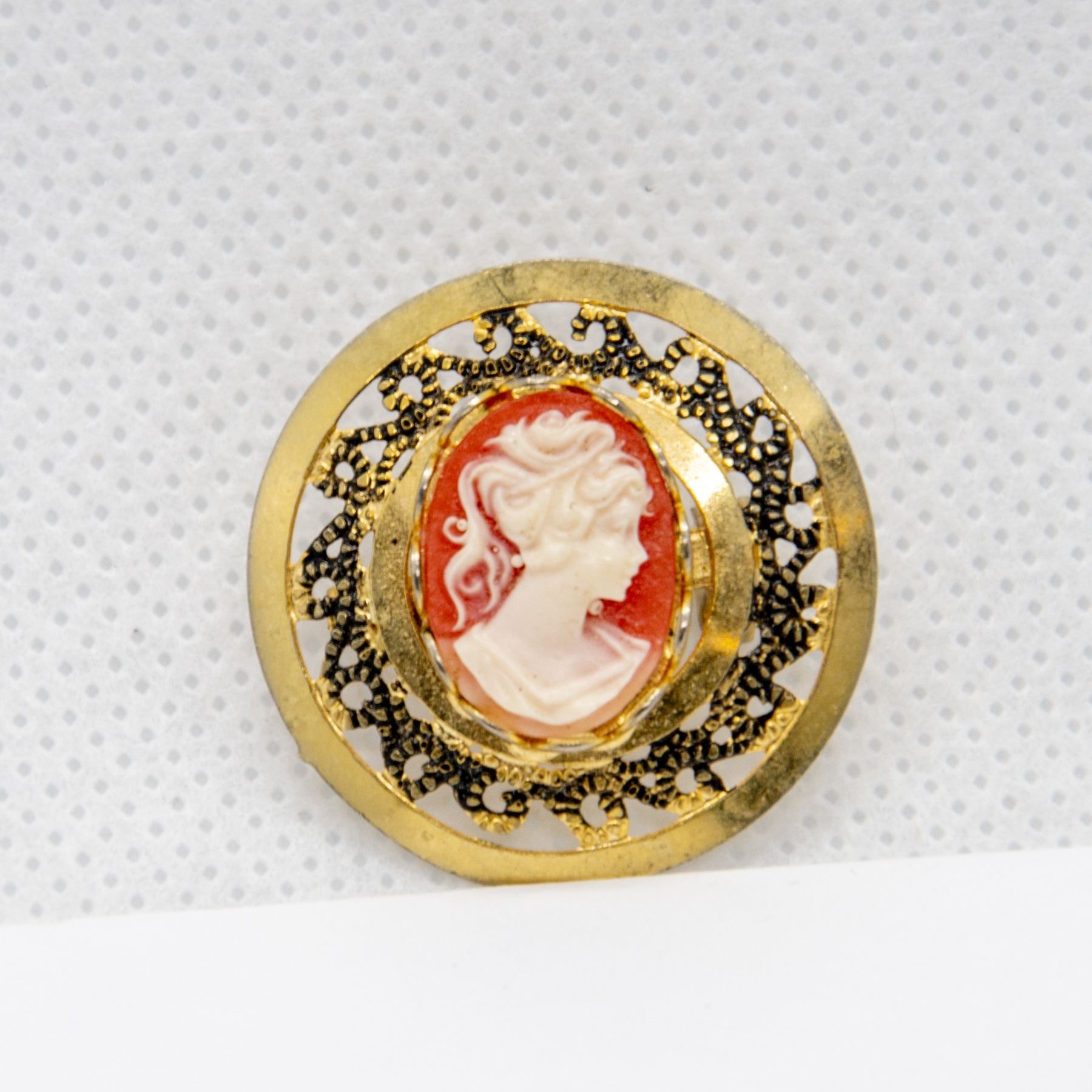 VINTAGE GOLD TONE CAMEO BROOCH